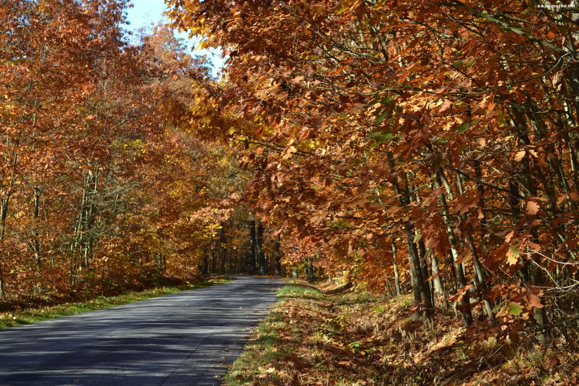 Lesie, Szosa, W, Jesiennym, Dębowym na Komórkę