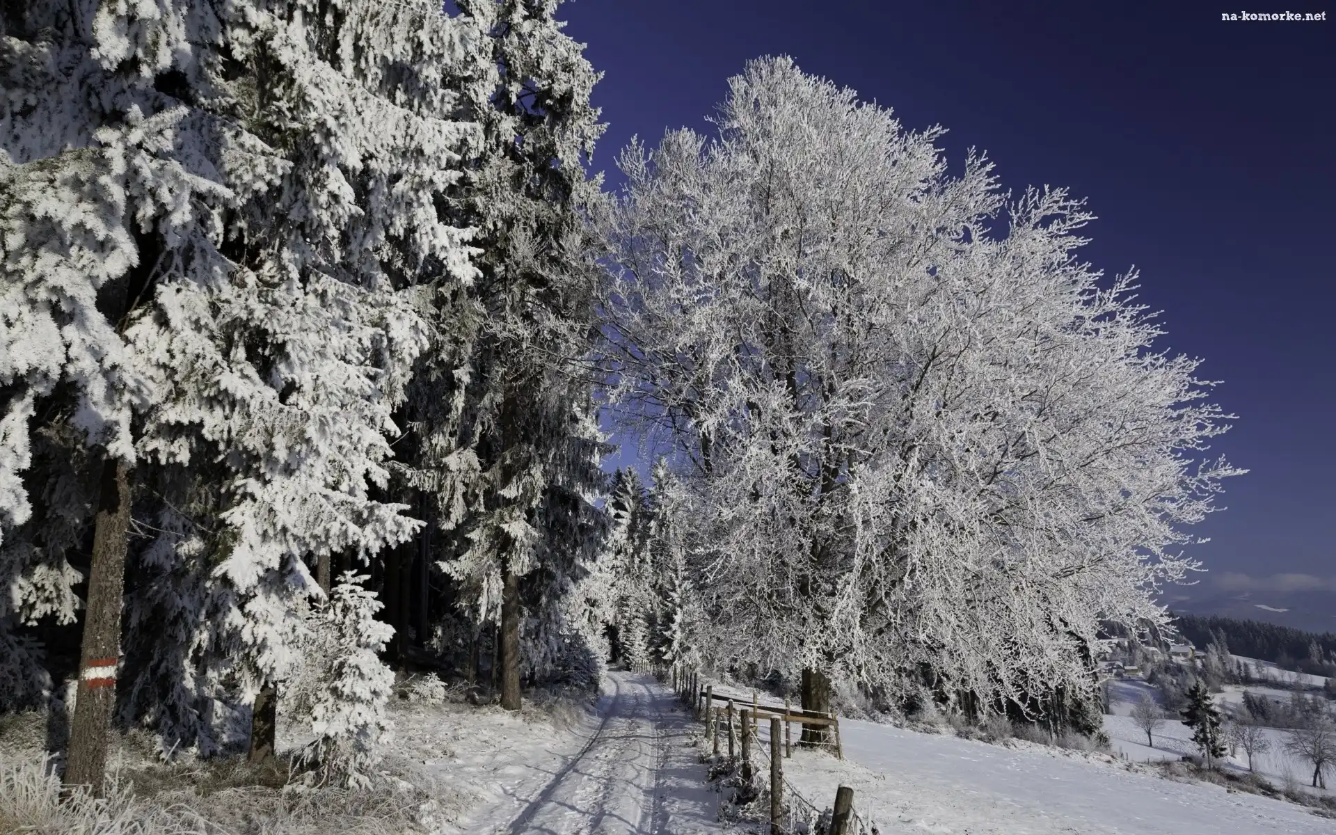 Leśna, Drzewa, Droga, Oszronione na Komórkę
