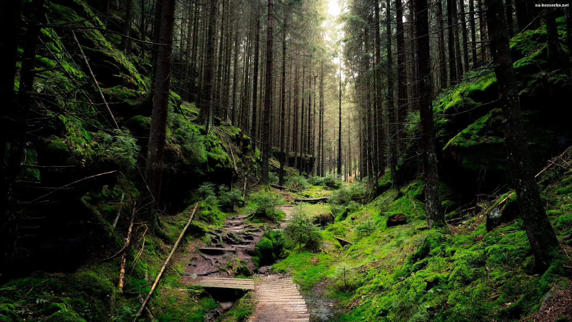 Las, Leśna, Ścieżka, Drzewa, Kładka na Komórkę
