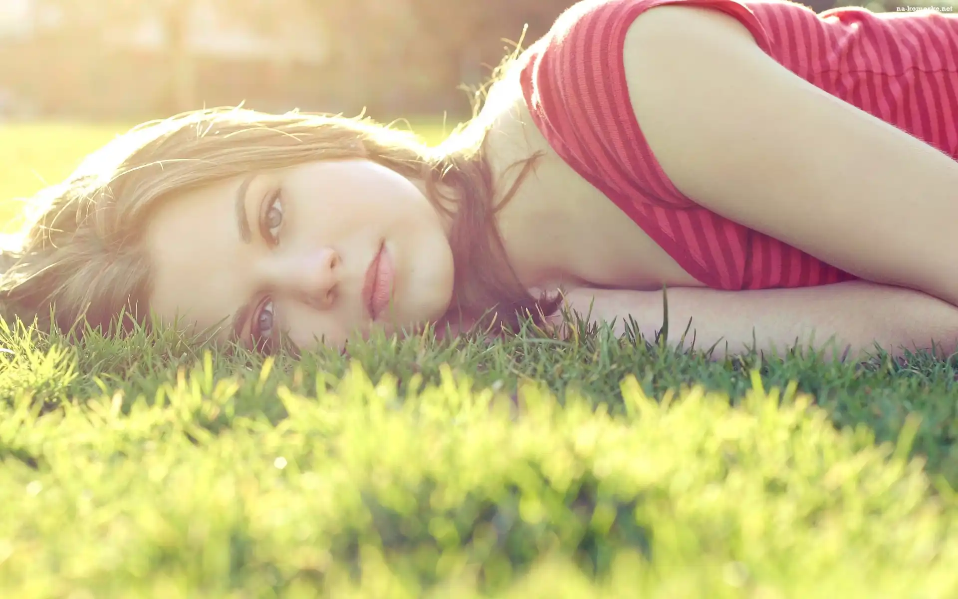 Trawa, Leżąca, Kobieta na Komórkę