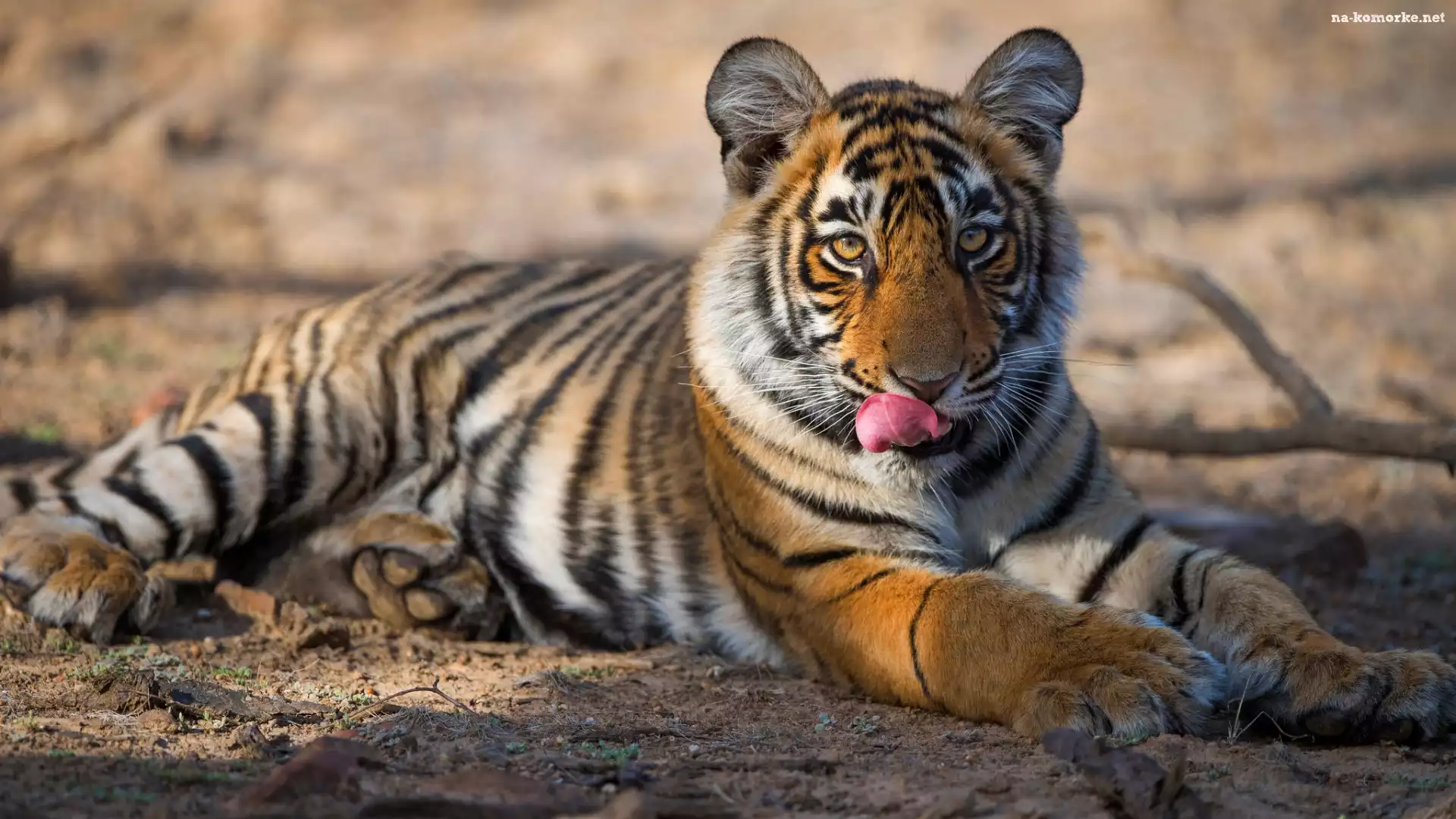 Młody, Leżący Tygrys na Komórkę