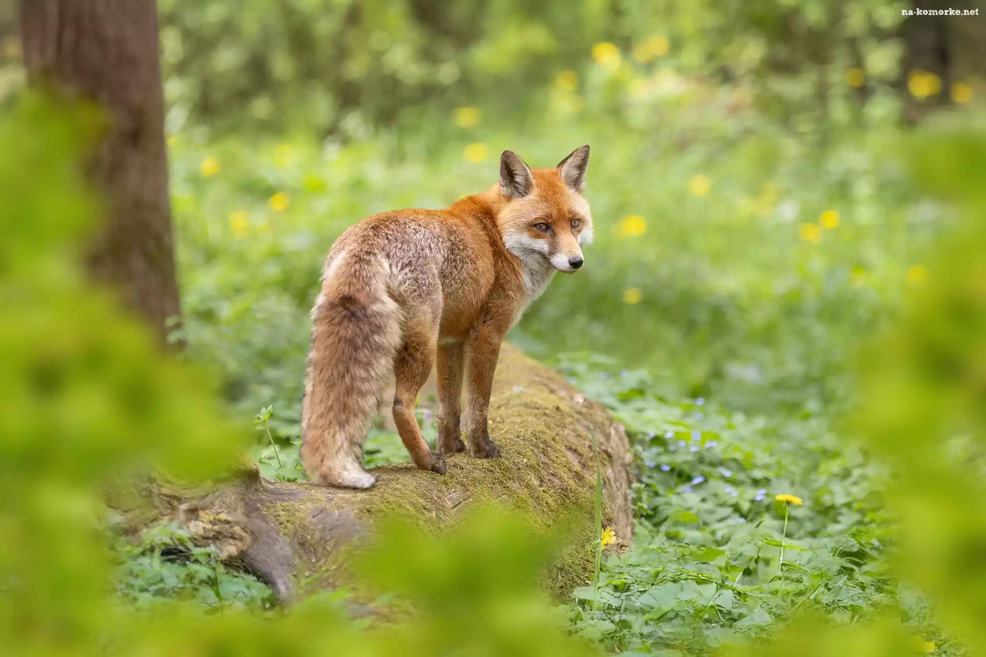 Rudy, Leżący, Omszały, Lis, Pień na Komórkę