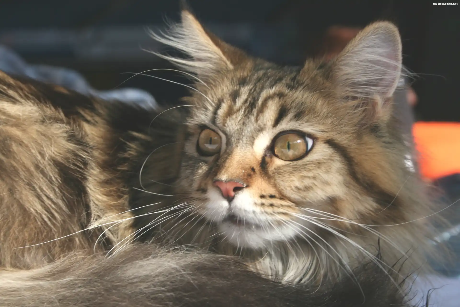 Leżący, Maine coon, Szary, Kotek na Komórkę