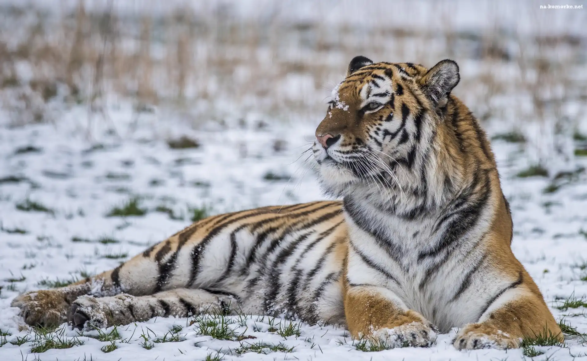 Leżący, Zima, Tygrys, Śnieg na Komórkę