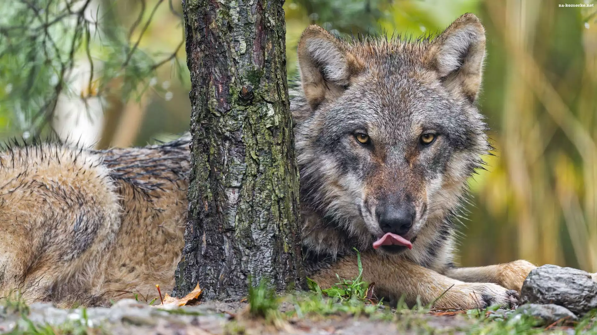 Leżący, Drzewo, Wilk na Komórkę