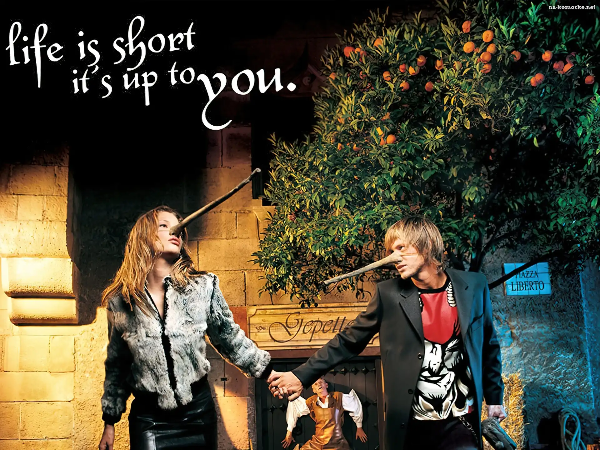 Liberto, pinokio, kobieta, mężczyzna na Komórkę