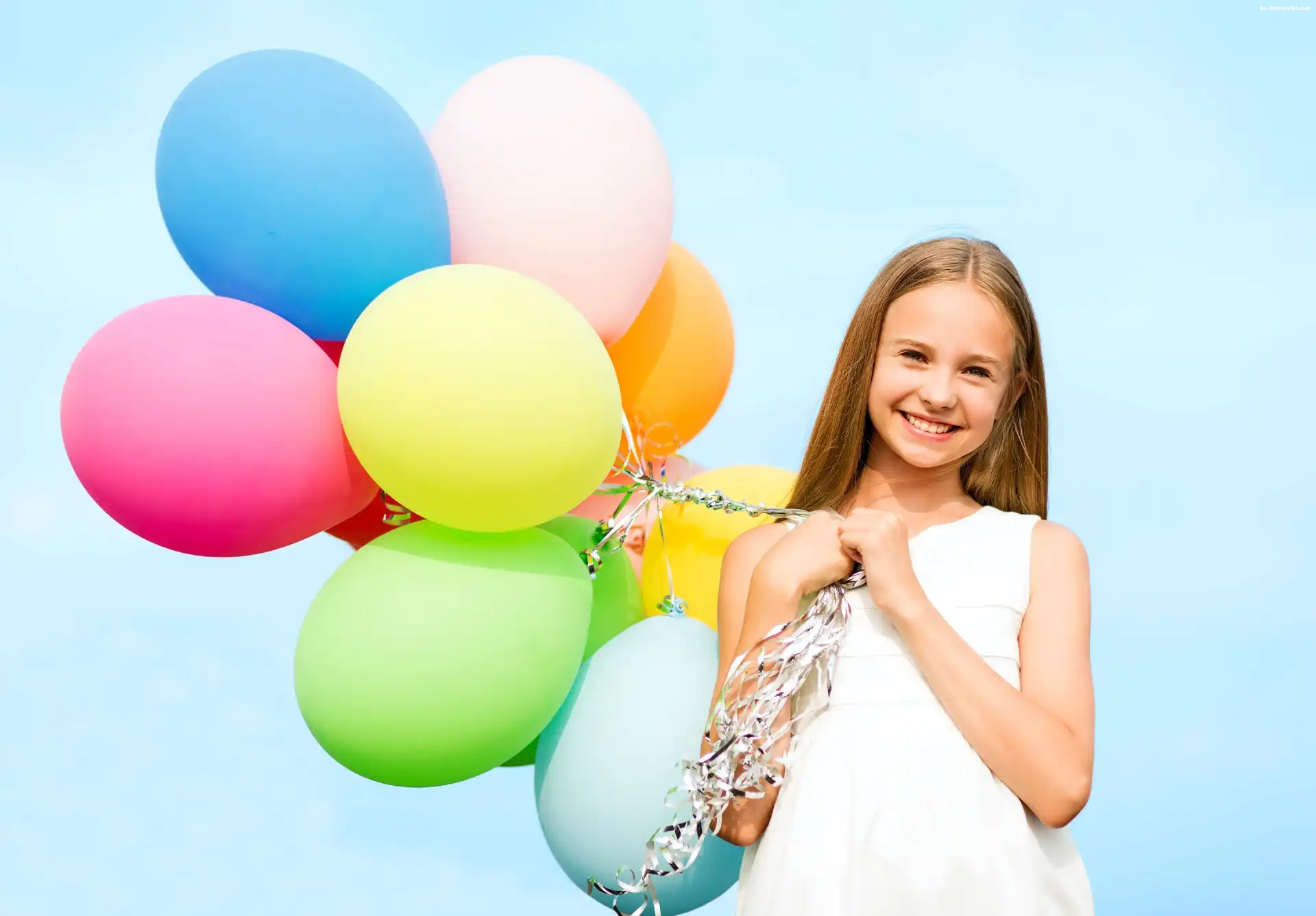 Śliczna, Balony, Uśmiech, Blond, Dziewczynka, Dziecko, Kolorowe na Komórkę