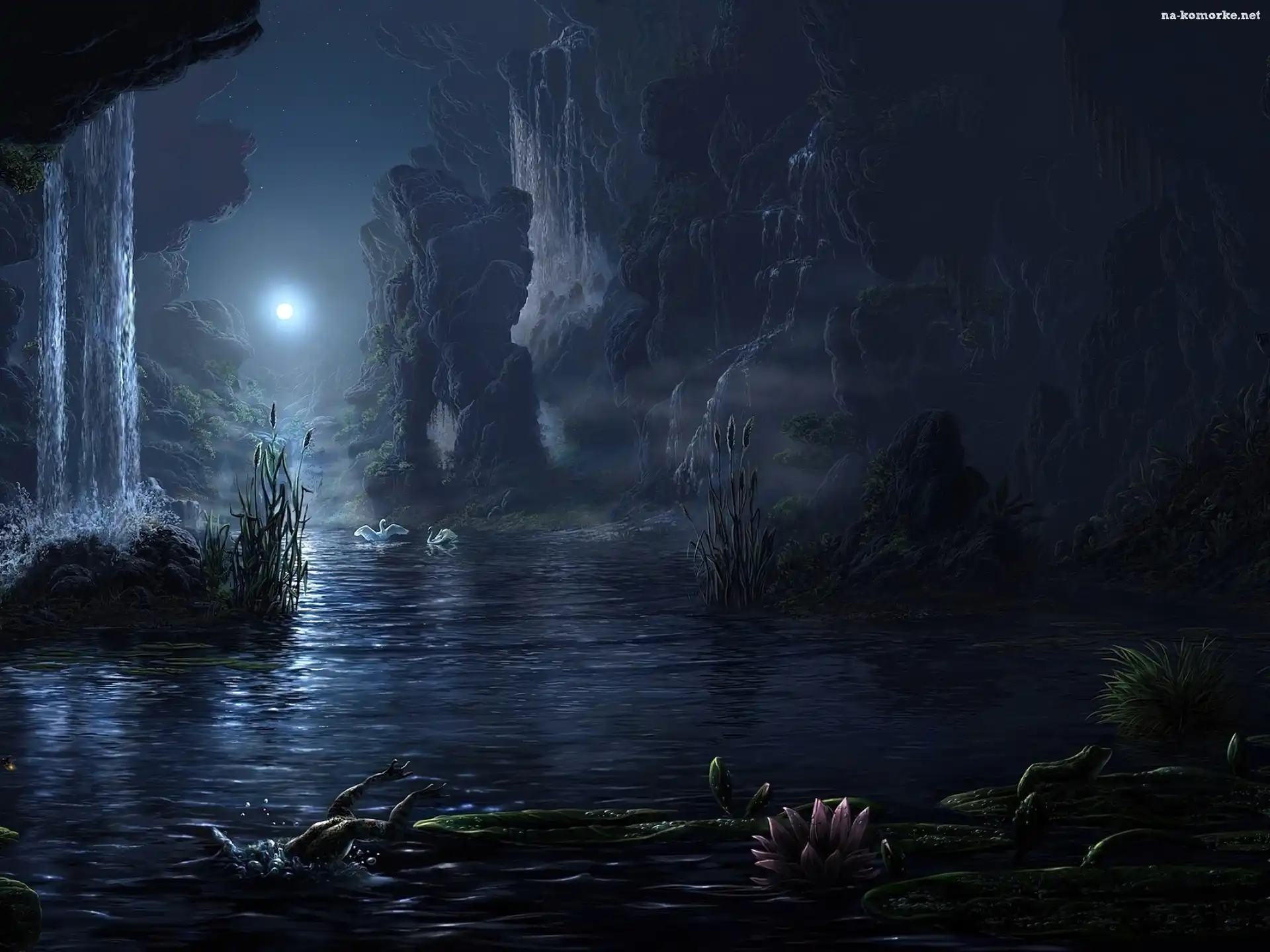 Lilia, Wodospad, Noc, Żaba, Łabędzie, Wodna na Komórkę