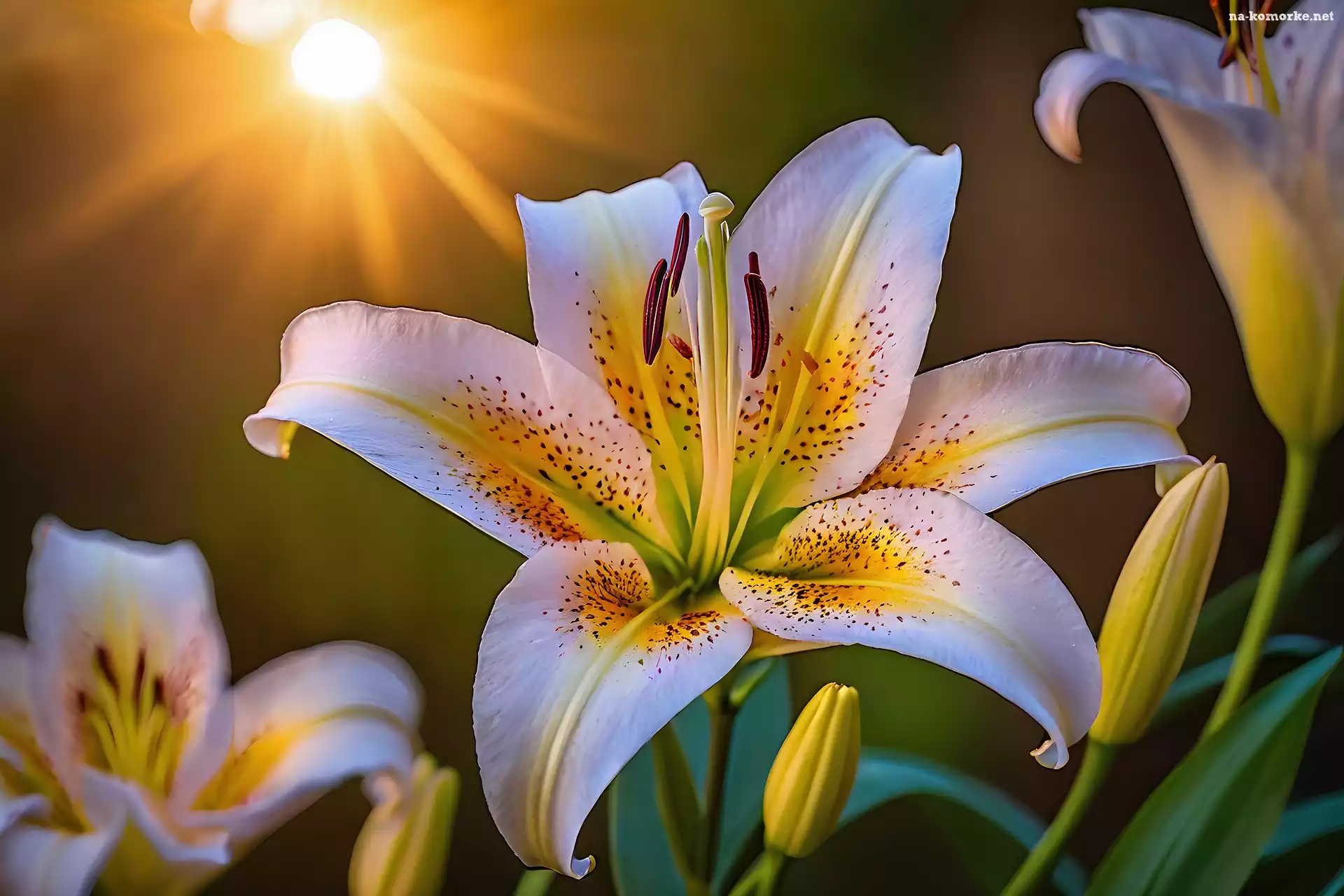 Kwiat, Lilia, Płatki, Nakrapiana, Słońce na Komórkę