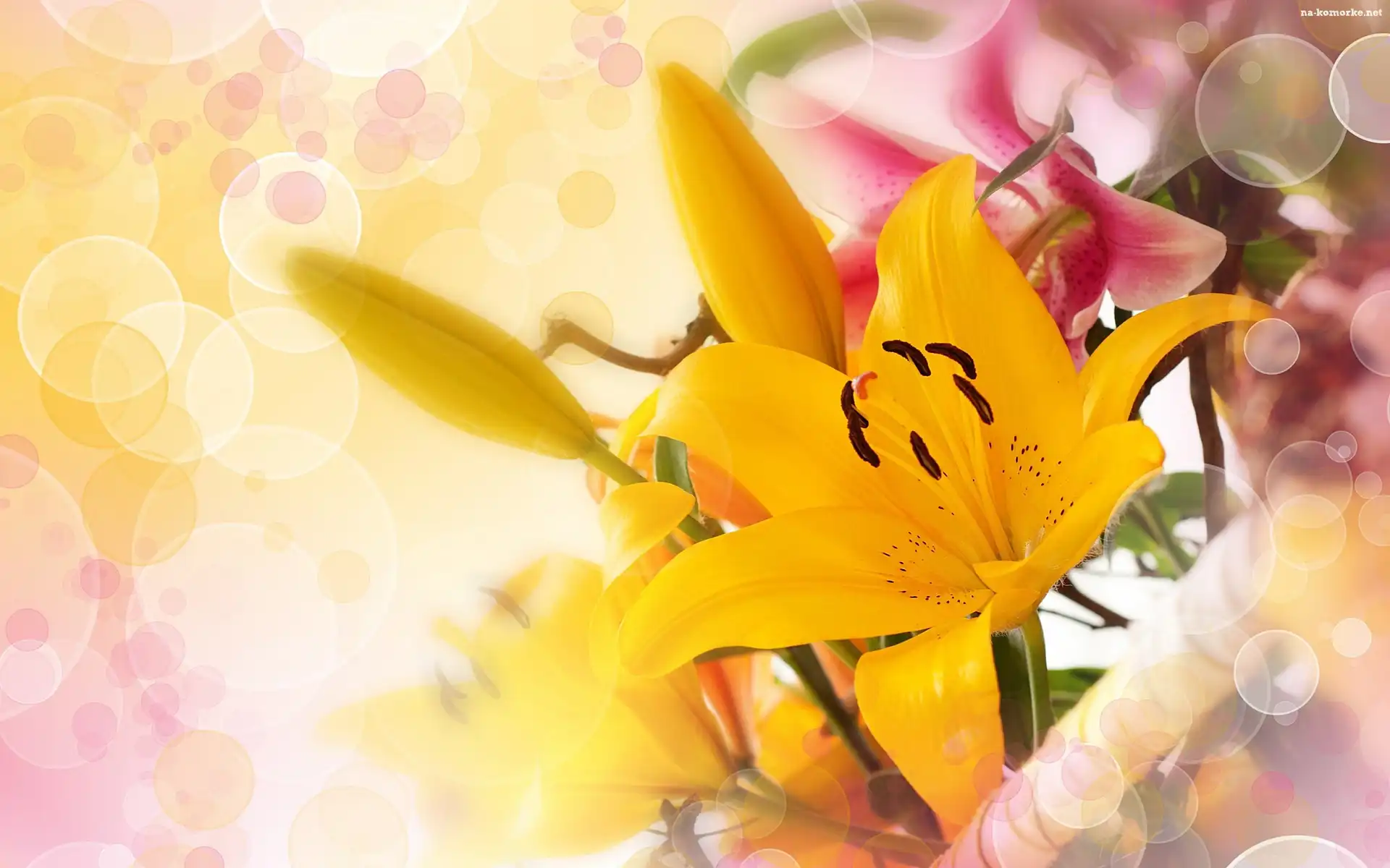 Żółta, Światła, Lilia, Refleksy na Komórkę