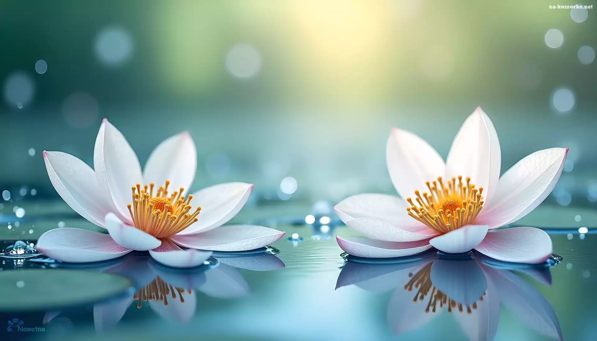 Dwie, Kwiaty, Grafika, Lilie wodne, AI na Komórkę
