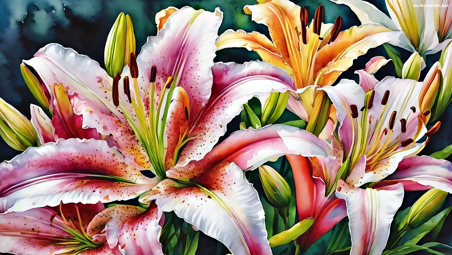Lilie, Akwarela, Kwiaty na Komórkę