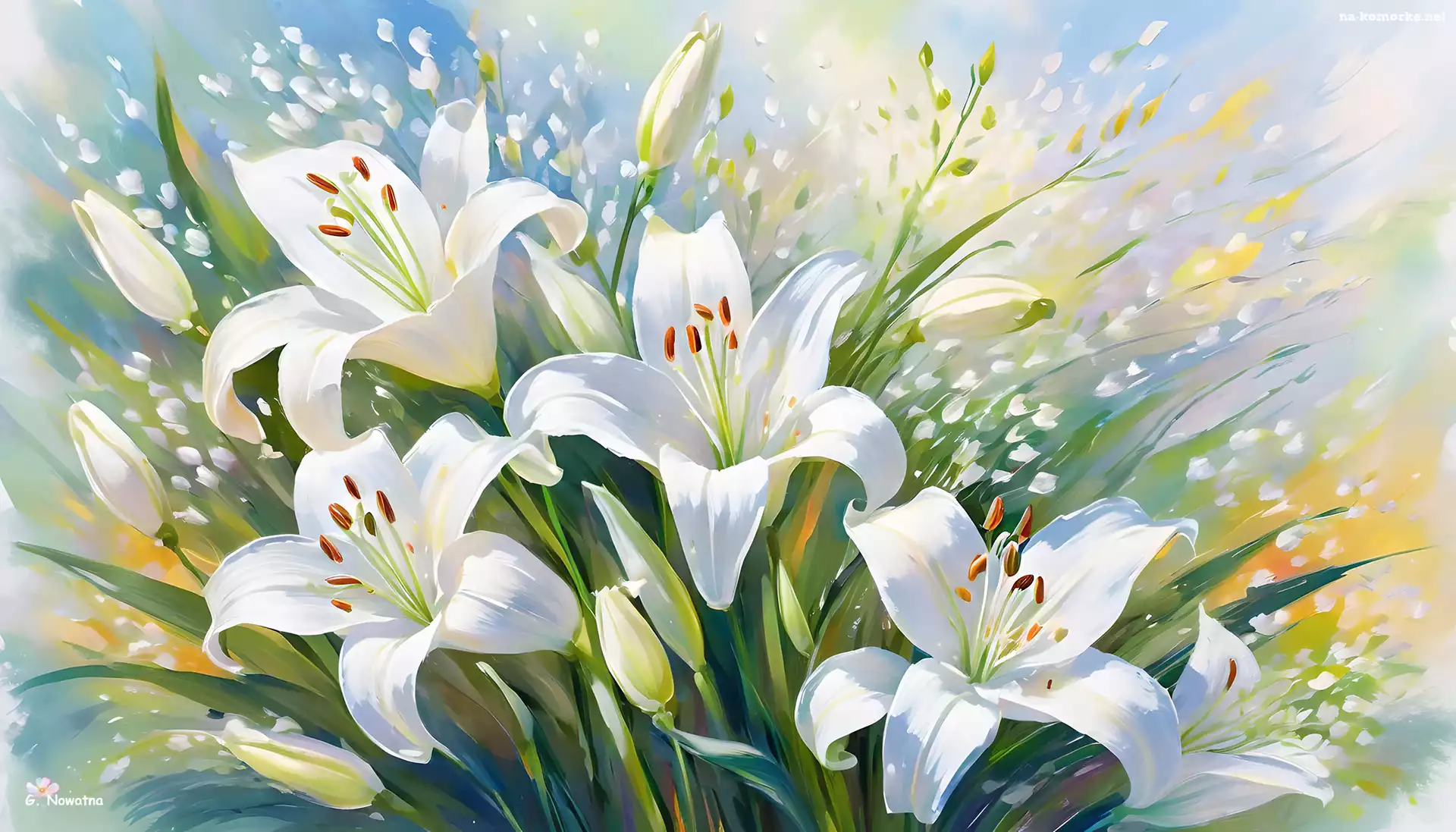 Kwiaty, Grafika, Białe, Lilie na Komórkę