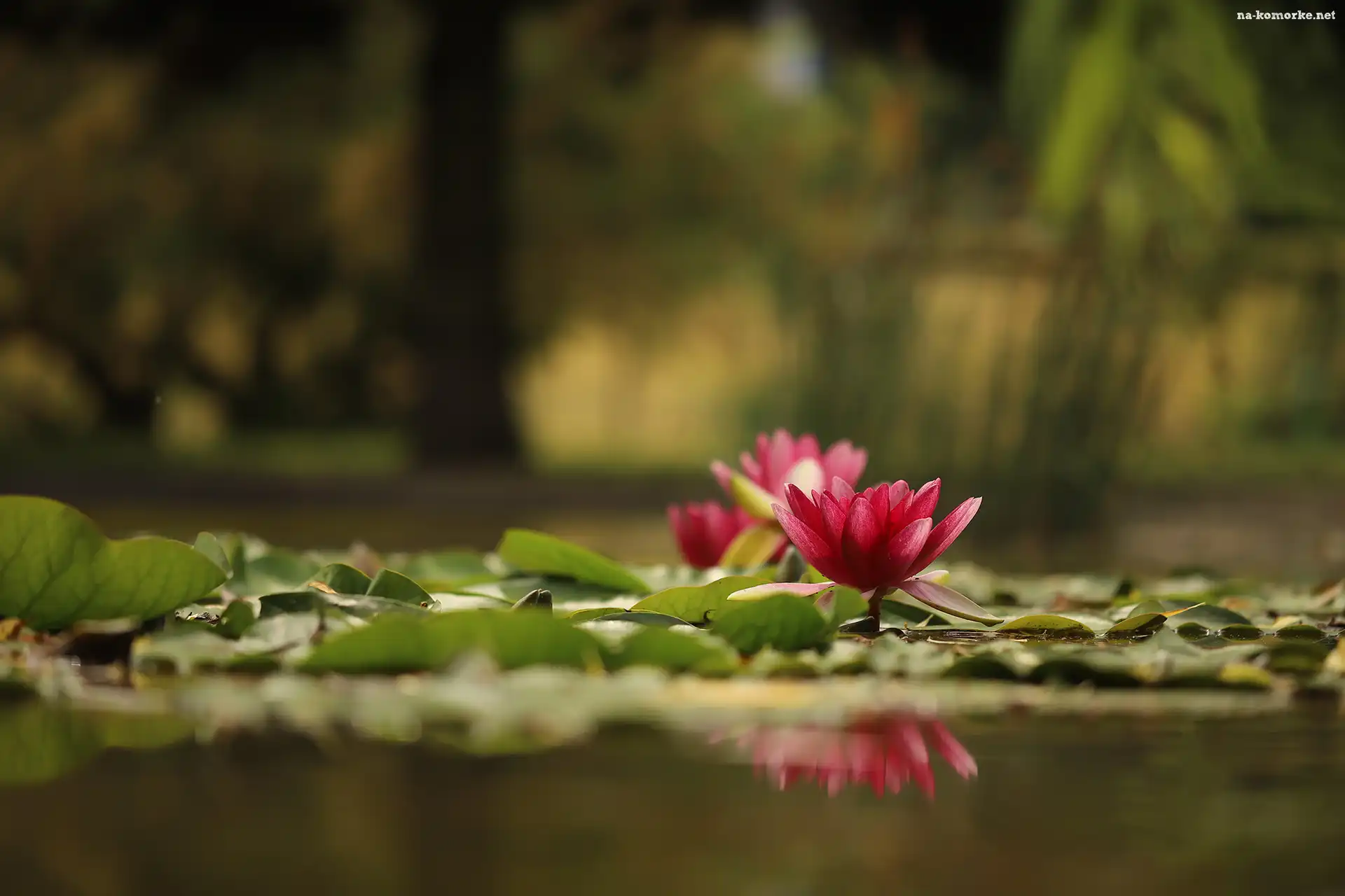 Lilie wodne, Kwiaty, Nenufary, Grzybienie na Komórkę