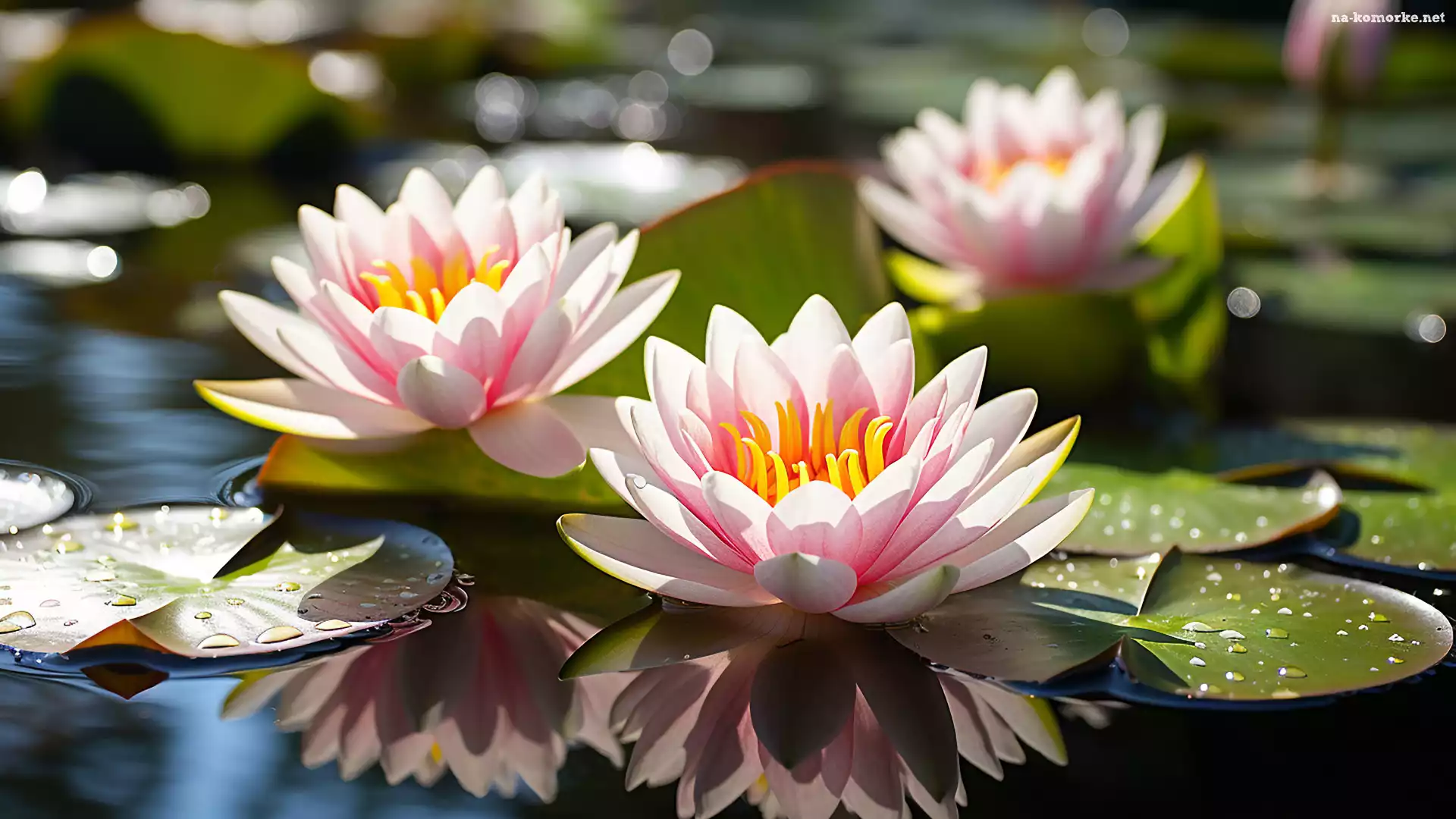 Kwiaty, Różowe, Liście, Lilie wodne, Woda na Komórkę