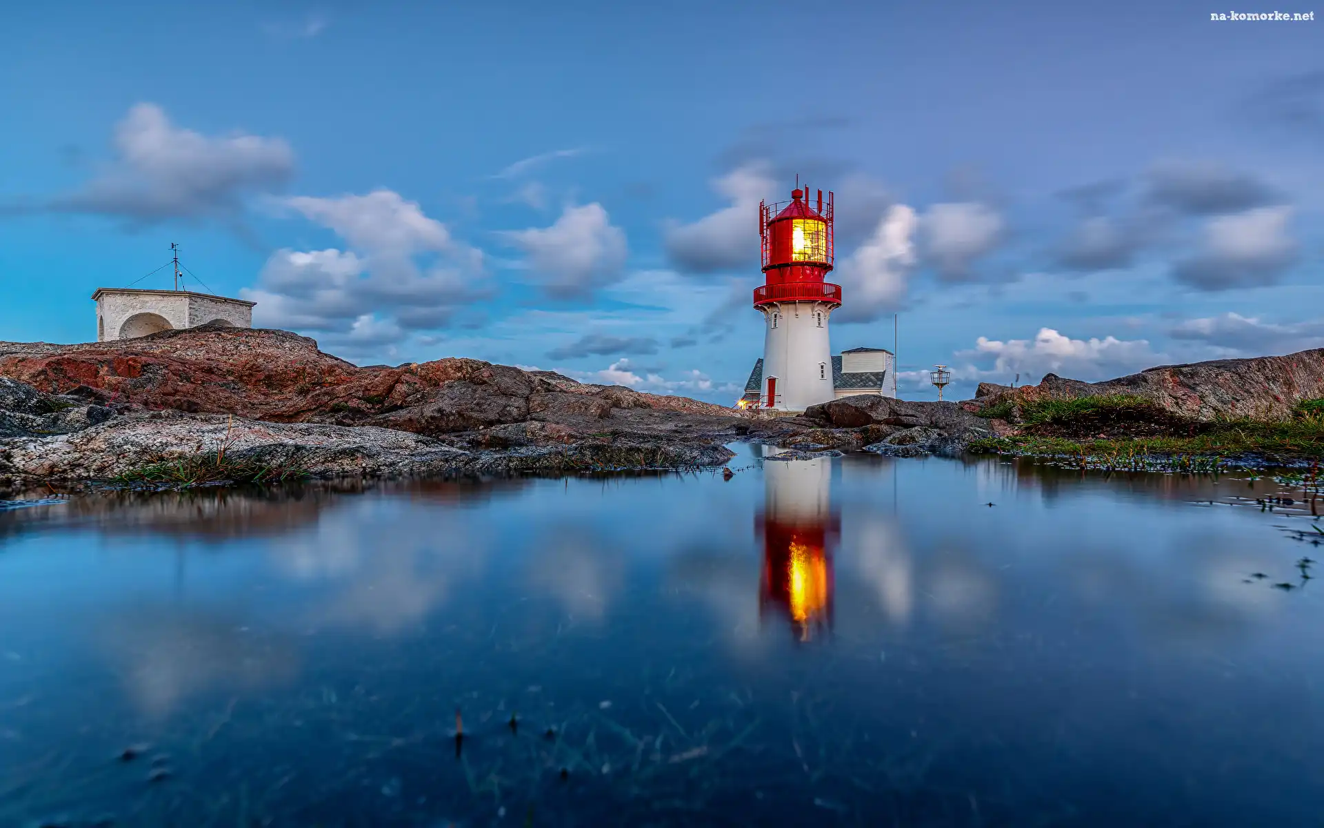 Lindesnes Lighthouse, Morze, Norwegia, Odbicie, Skały, Latarnia morska, Wybrzeże na Komórkę