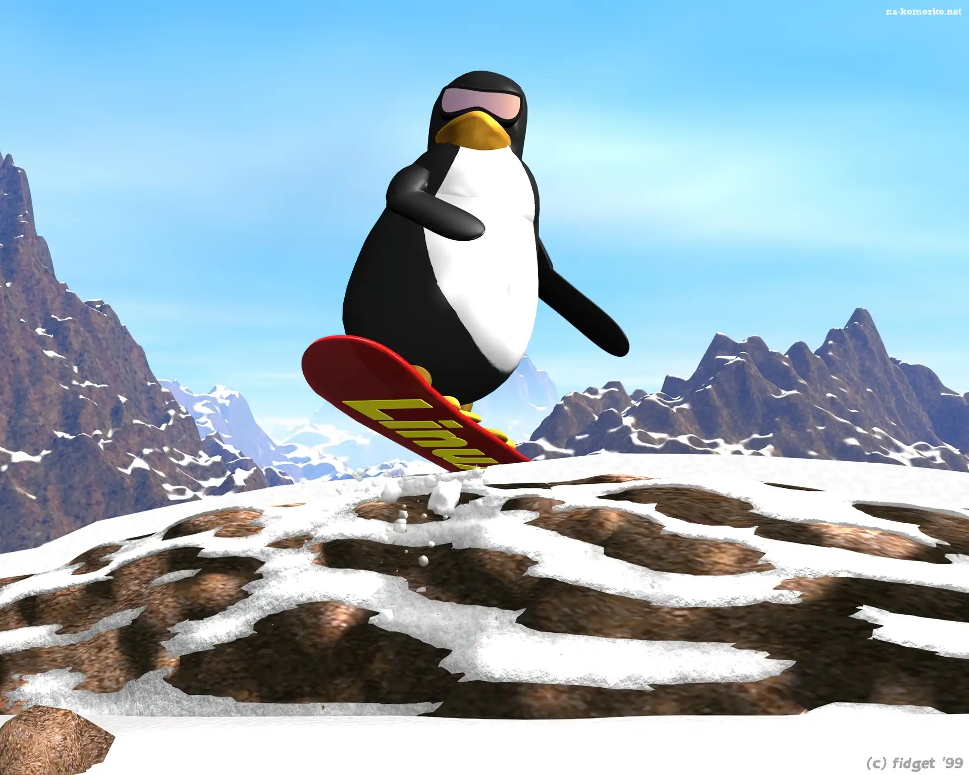 Linux, Pingwin, Snowbord, Śnieg, Zima na Komórkę