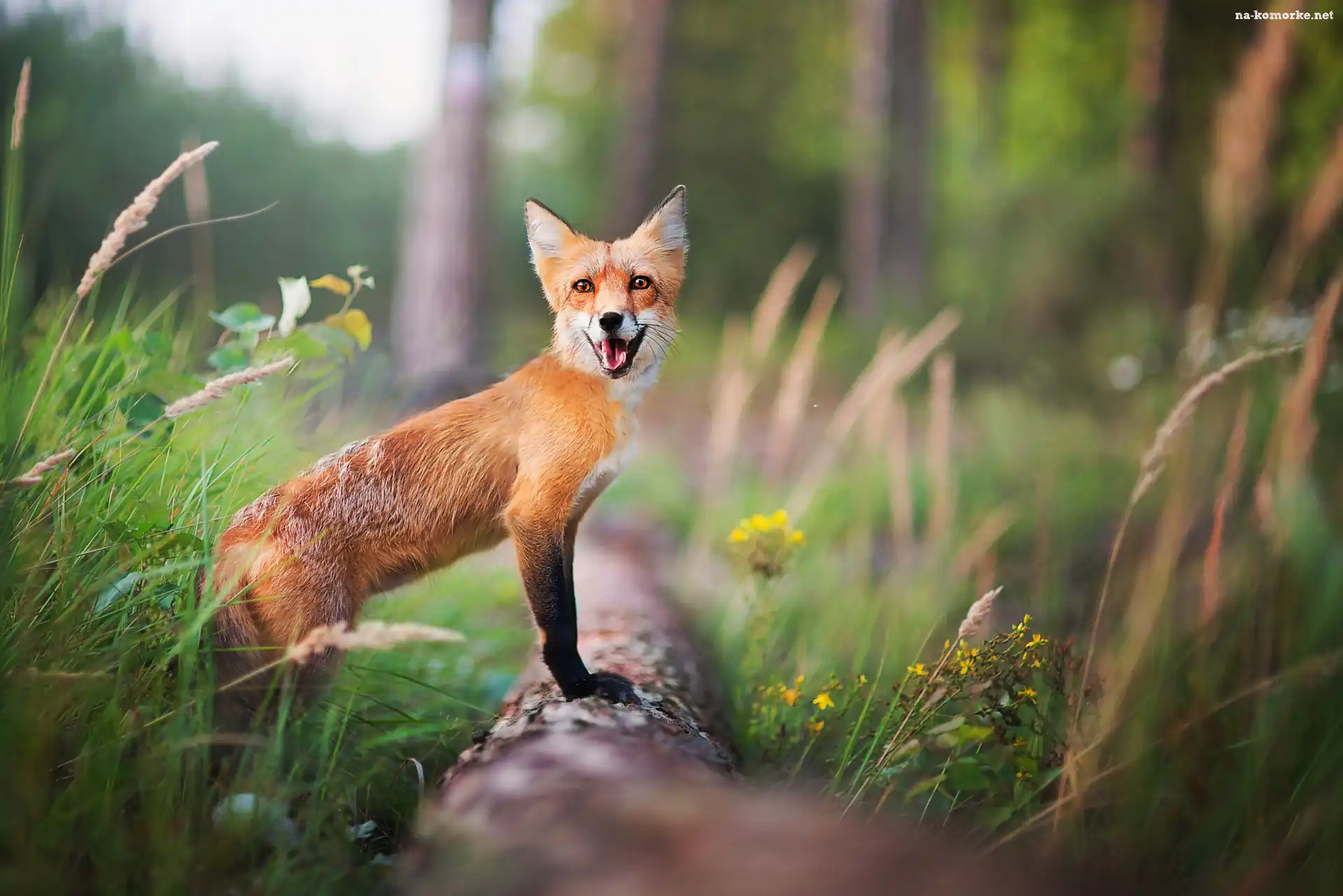 Lis, Trawa, Drzewo, Kwiaty na Komórkę