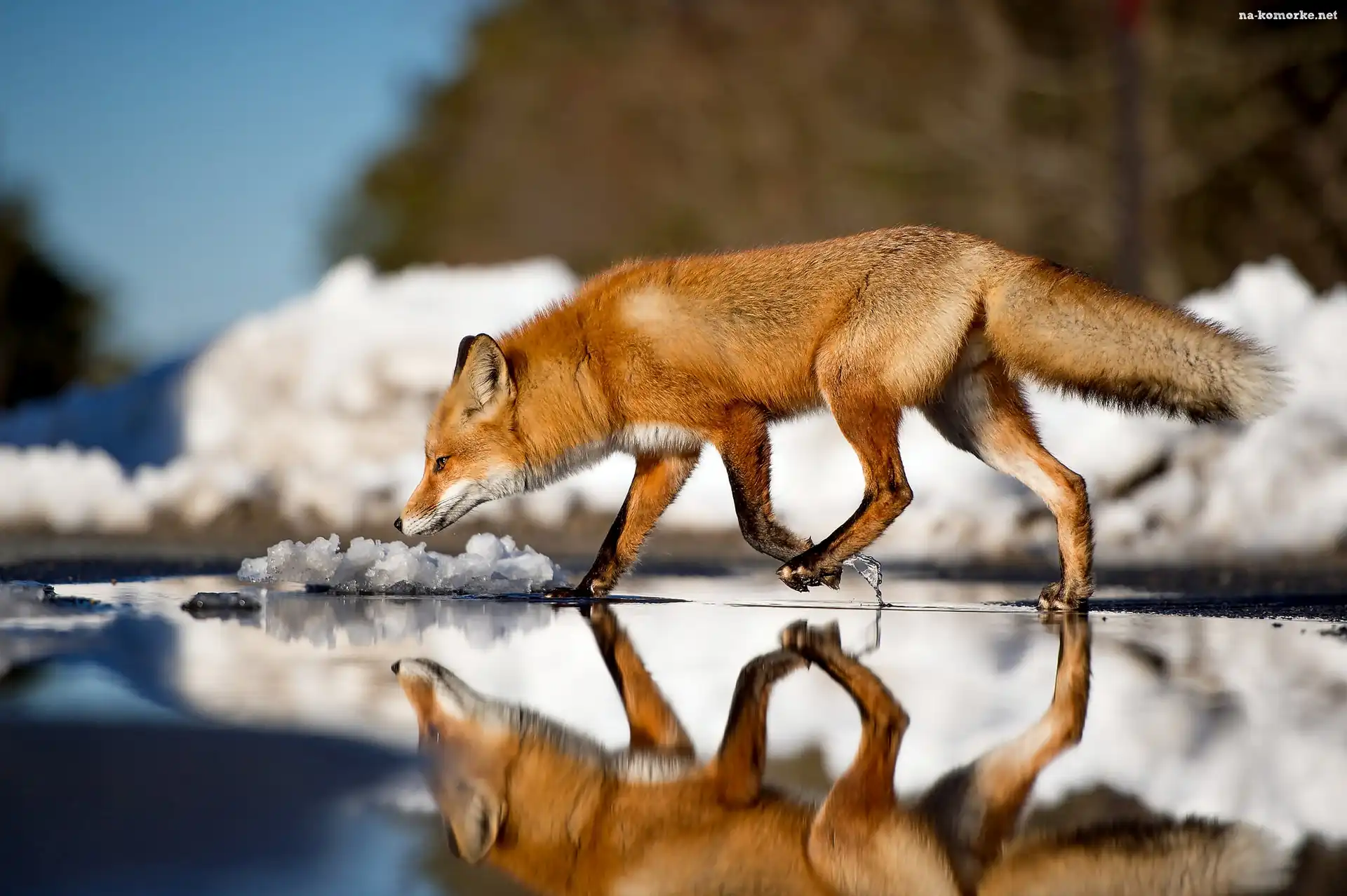 Lis, Odbicie, Śnieg, Woda na Komórkę
