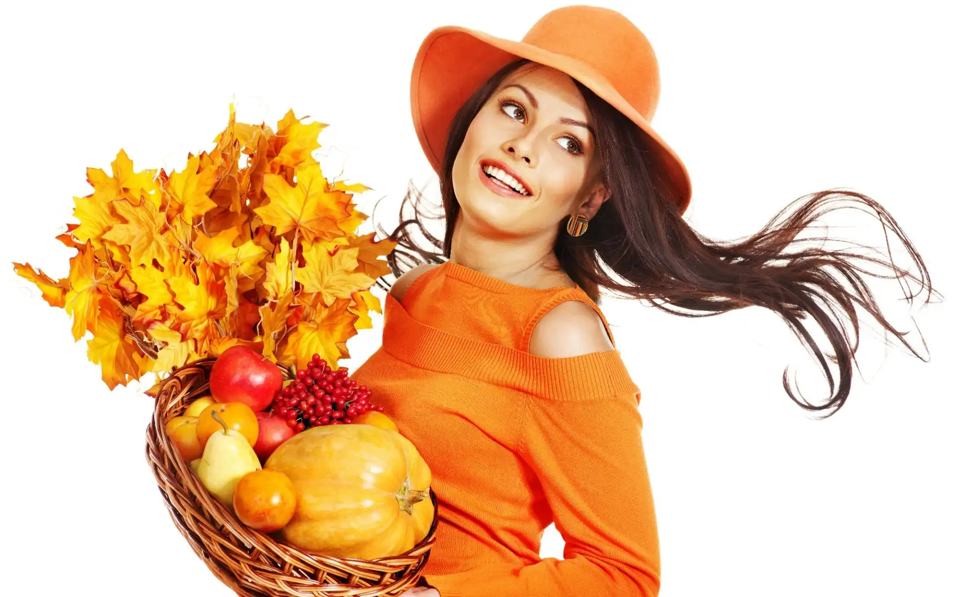 Liści, Brunetka, Dary, Jesieni, Bukiet na Komórkę
