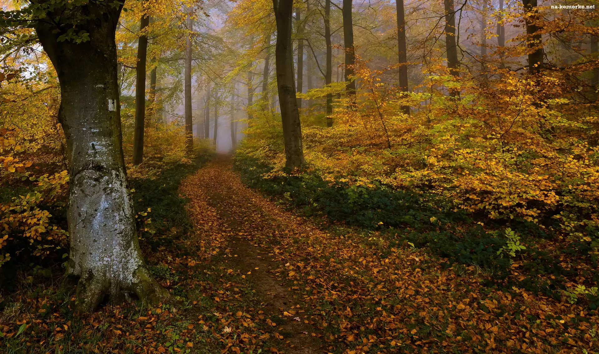 Liściasty, Mgła, Jesień, Droga, Las, Drzewa na Komórkę