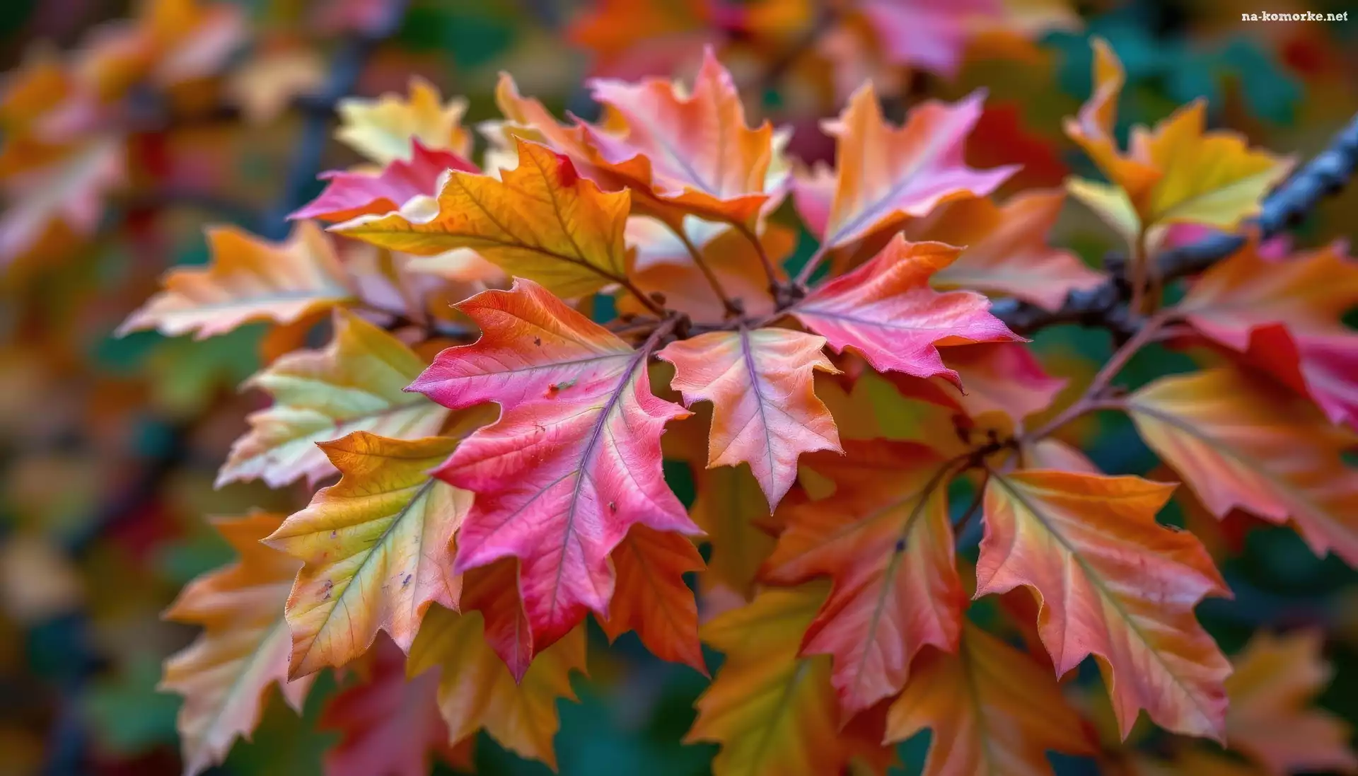 Dąb, Gałązka, Jesień, Liście, Grafika AI na Komórkę