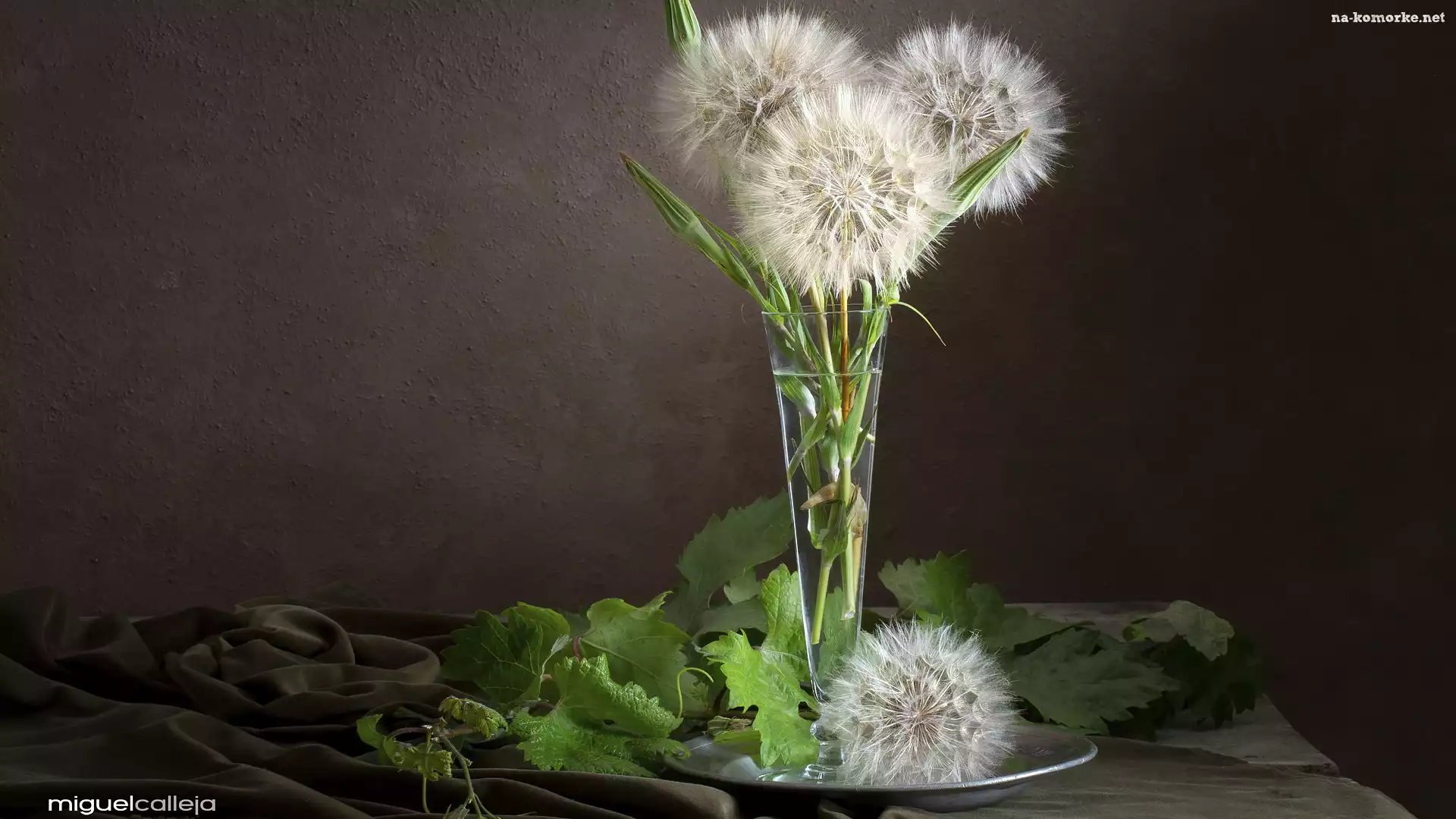 Dmuchawce, Liście, Kompozycja, Mniszek, Szklany, Wazon, Zielone na Komórkę
