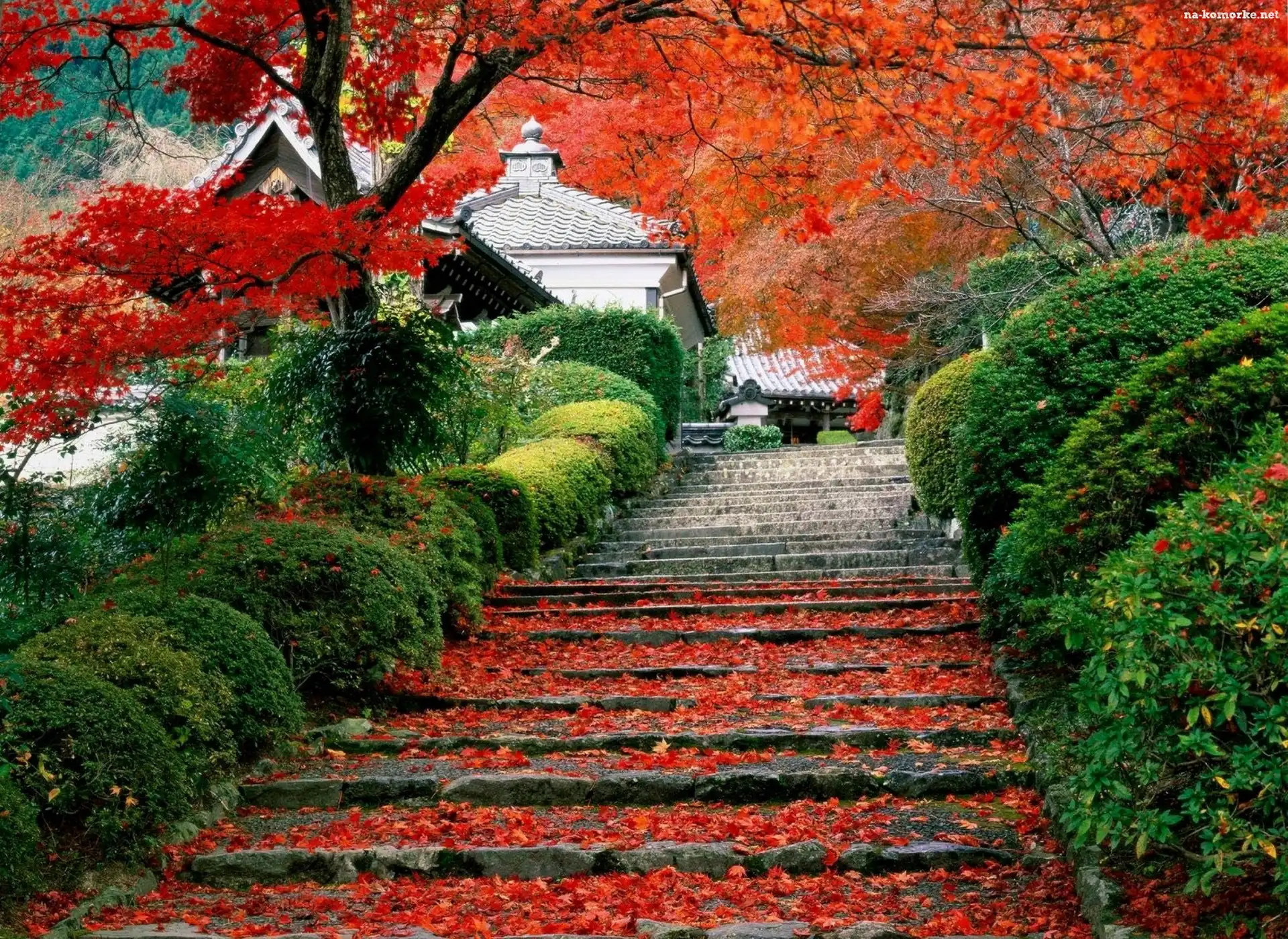 Liście, Dom, Japonia, Drzewo, Schody na Komórkę