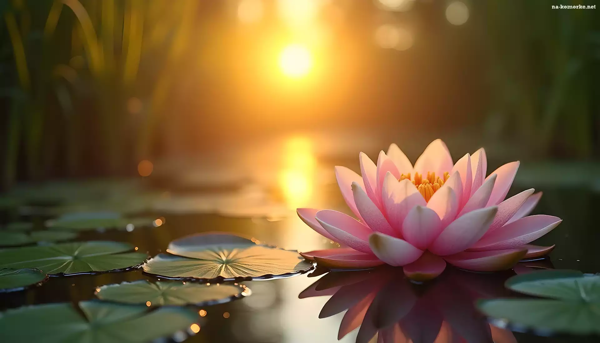 Lilia wodna, Kwiat, Liście, Różowy, Grafika na Komórkę