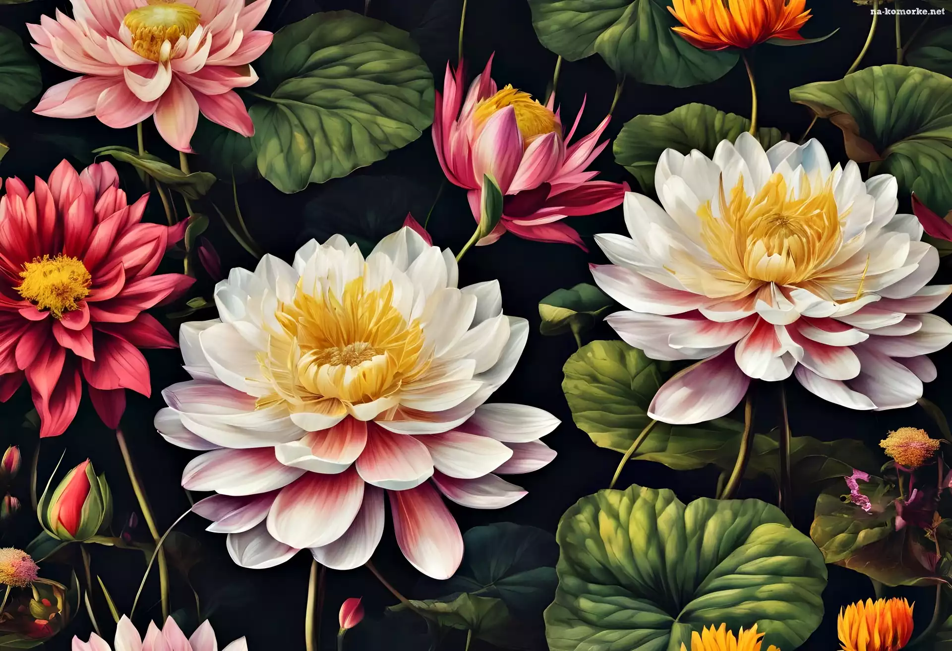 Lilie wodne, Kwiaty, Liście, Kolorowe, Grafika na Komórkę
