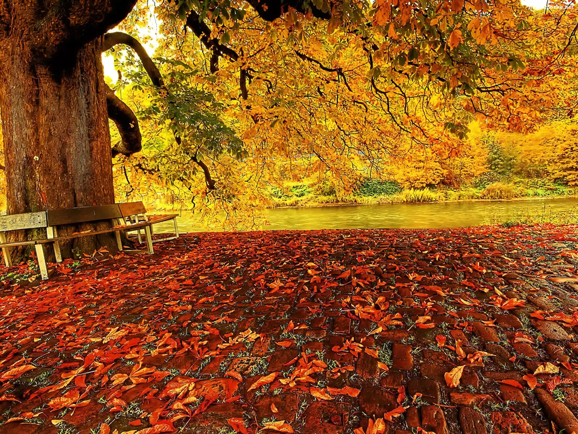 Jesień, Liście, Ławka na Komórkę