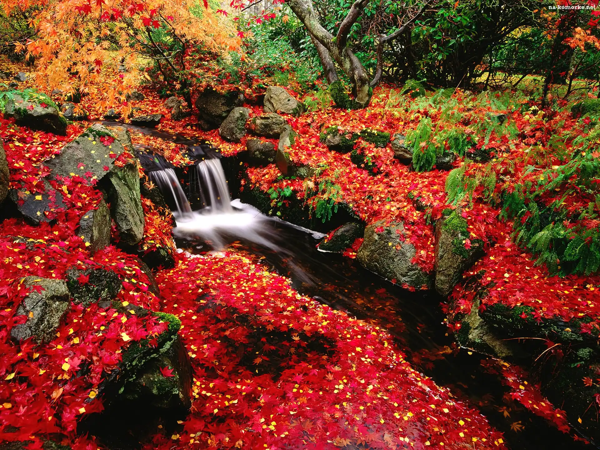 Liście, Drzewa, Kamienie, Rzeczka na Komórkę