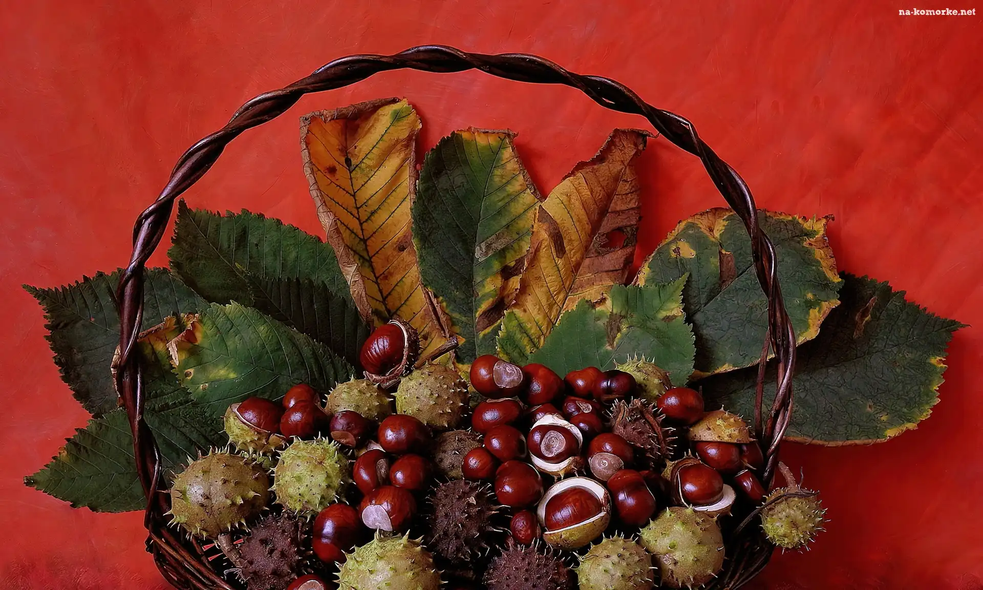 Liście, Jesień, Wiklinowy, Kosz, Kasztany na Komórkę