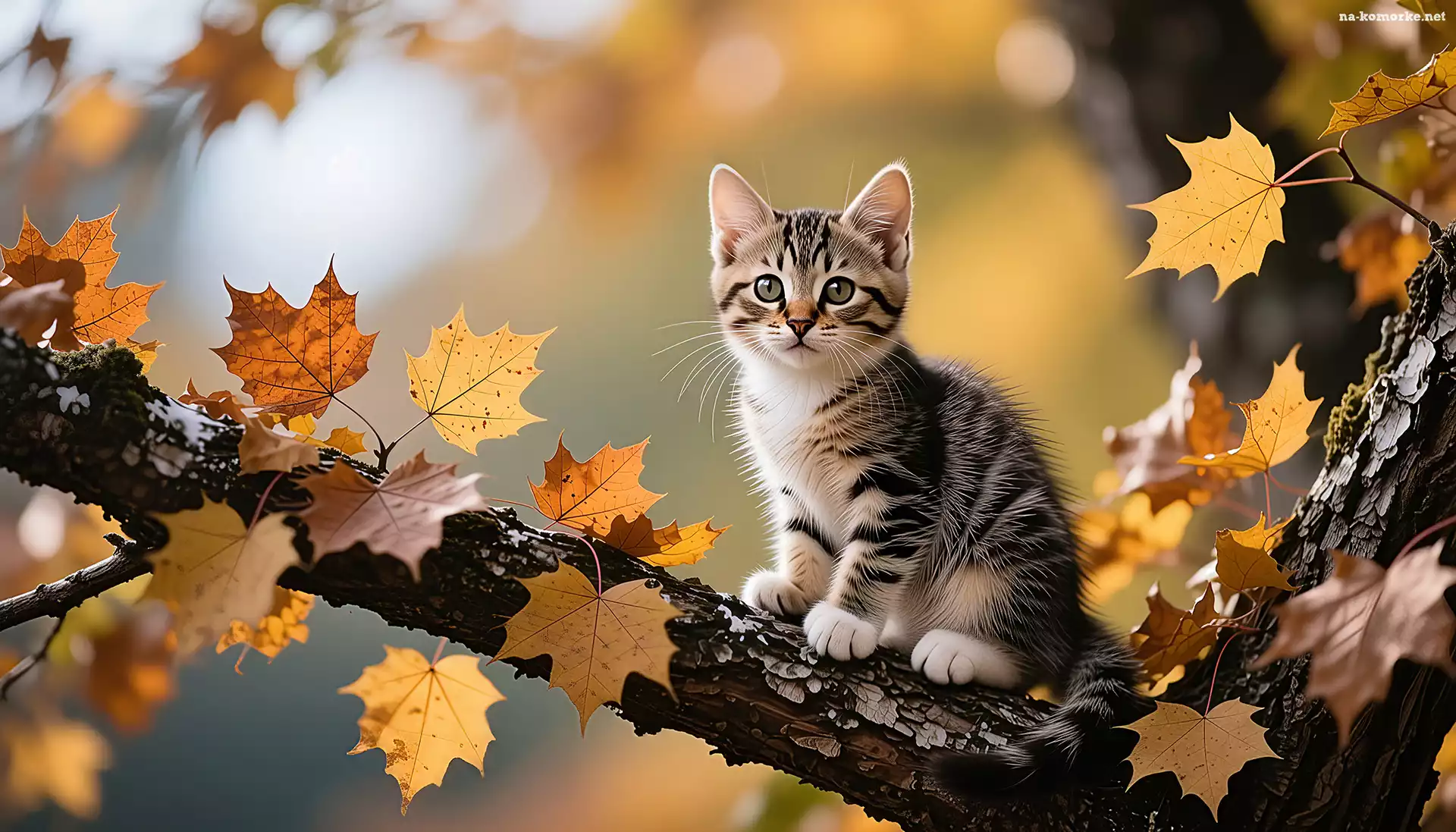 Jesienne, Pręgowany, Drzewo, Liście, Gałąź, Kot na Komórkę