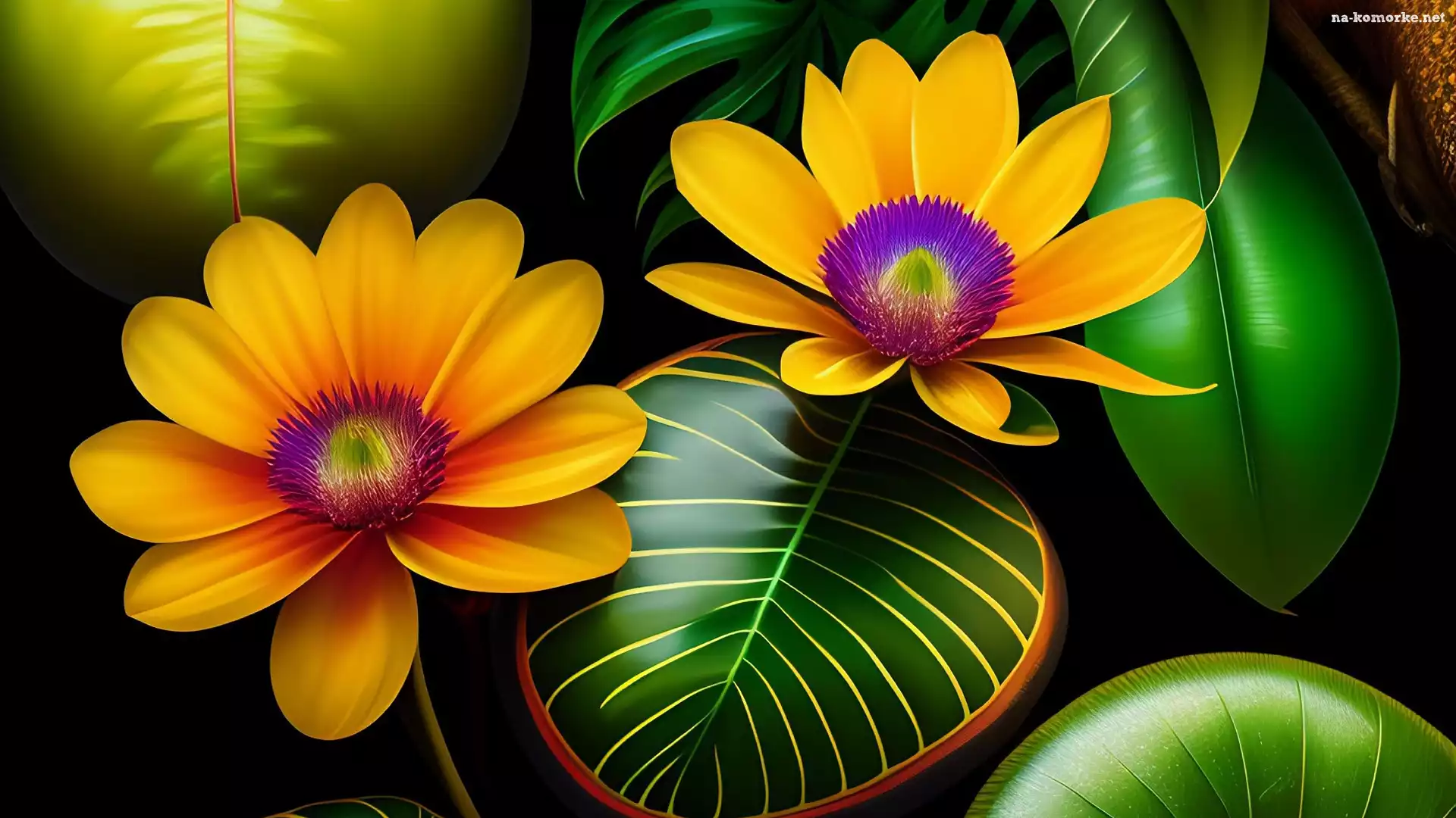 Kwiaty, Grafika 2D, Liście na Komórkę