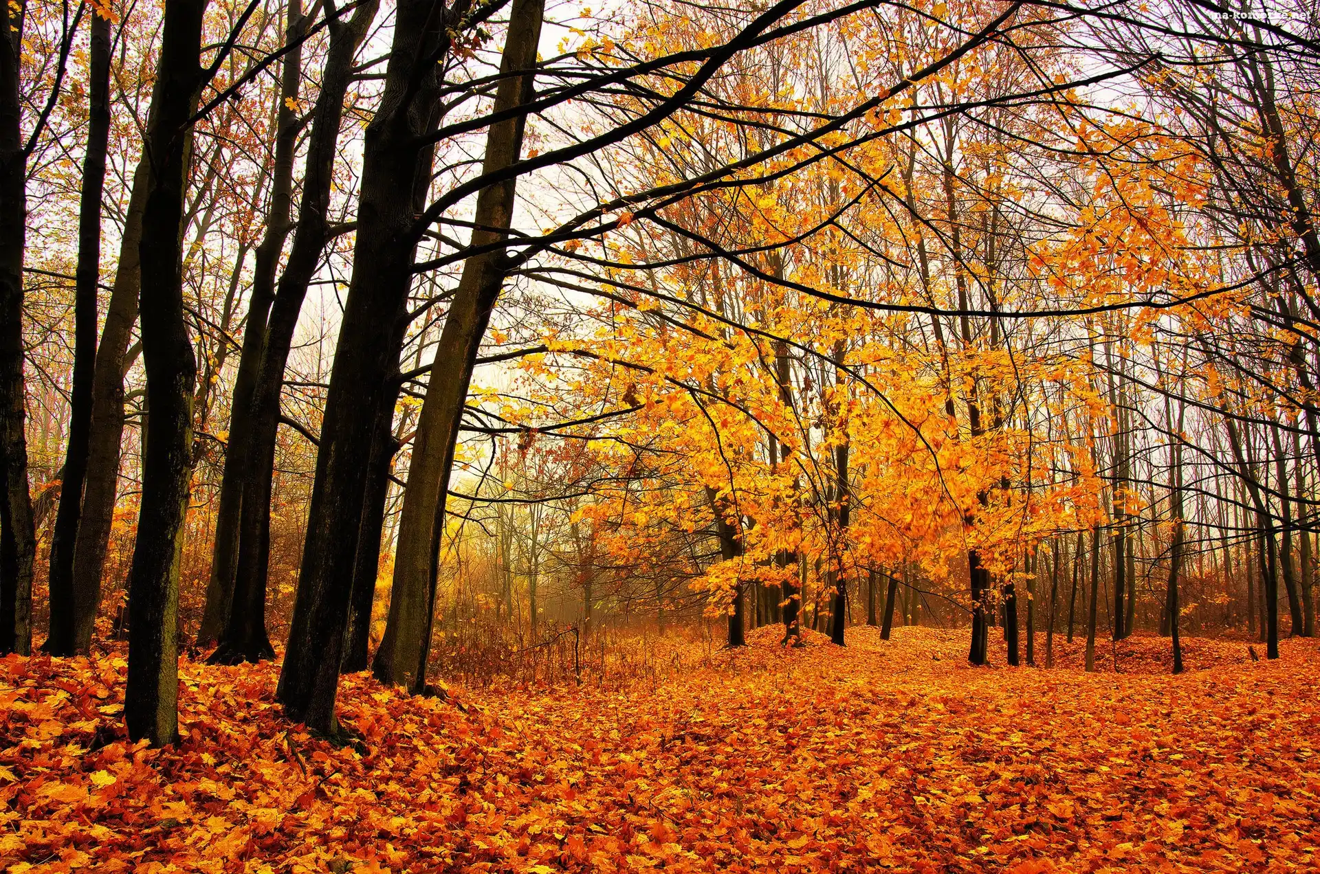Liście, Jesień, Drzewa, Las, Opadłe na Komórkę