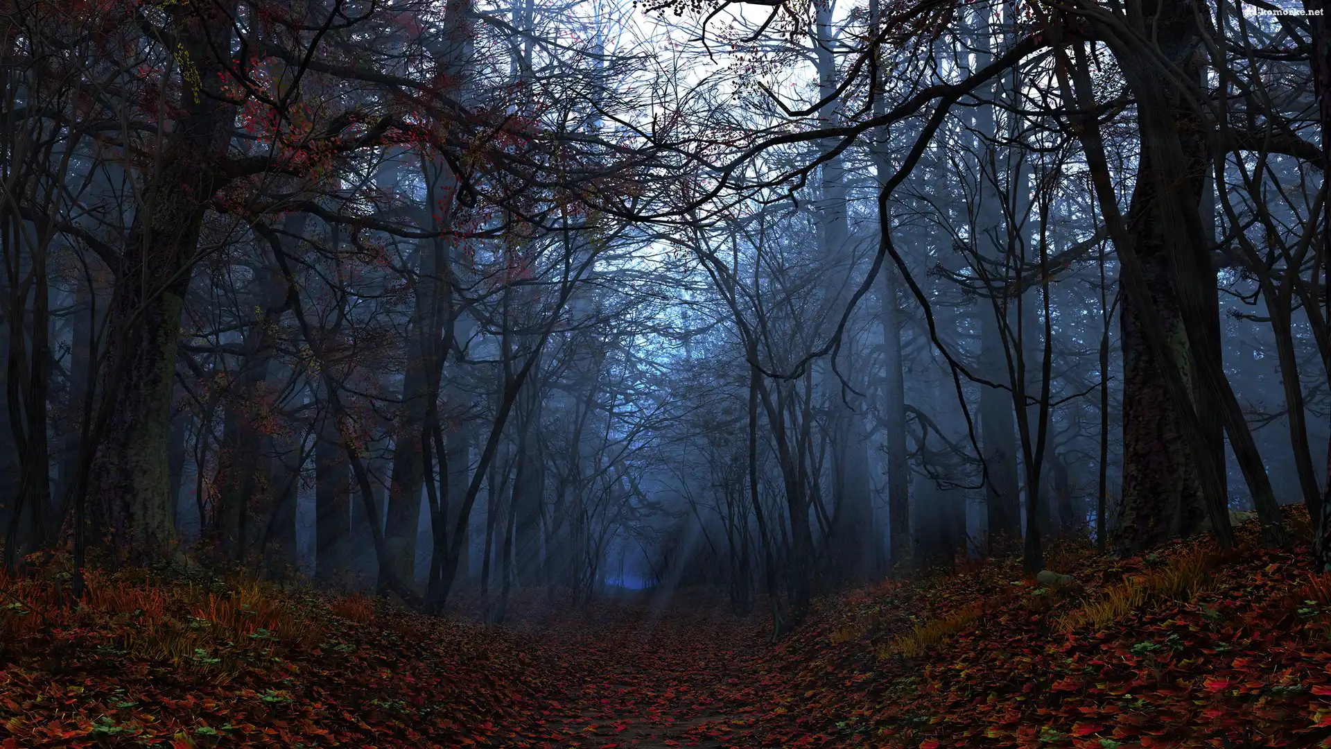 Światła, Las, Jesień, Liście, Promienie na Komórkę