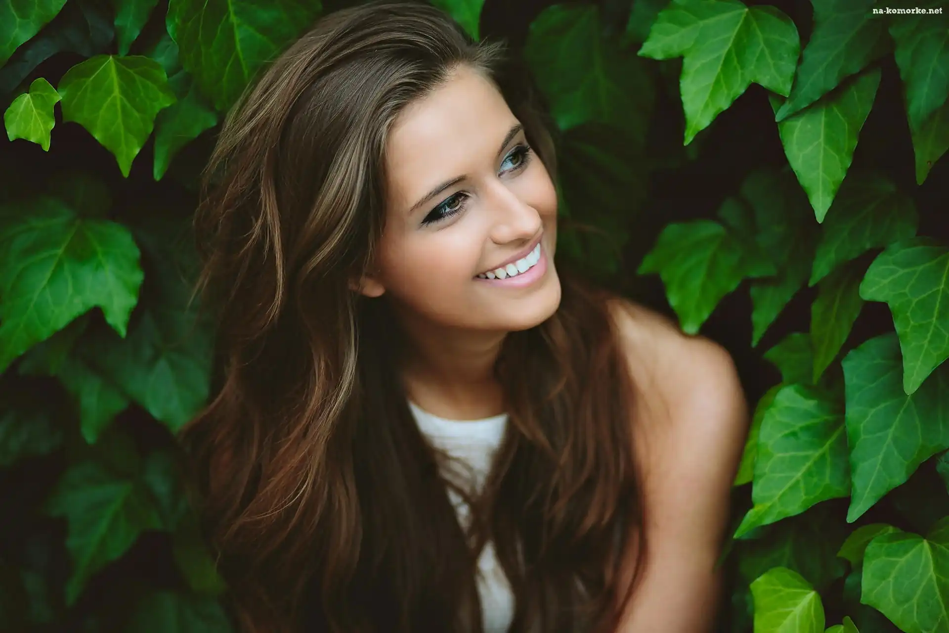 Liście, Uśmiechnięta, Dziewczyna, Makijaż, Drzewo na Komórkę