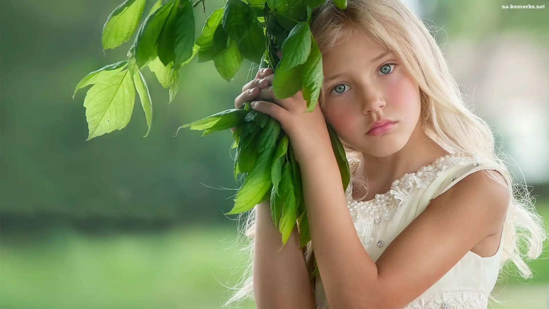 Liście, Dziewczynka, Blondynka, Niebieskie, Oczy na Komórkę