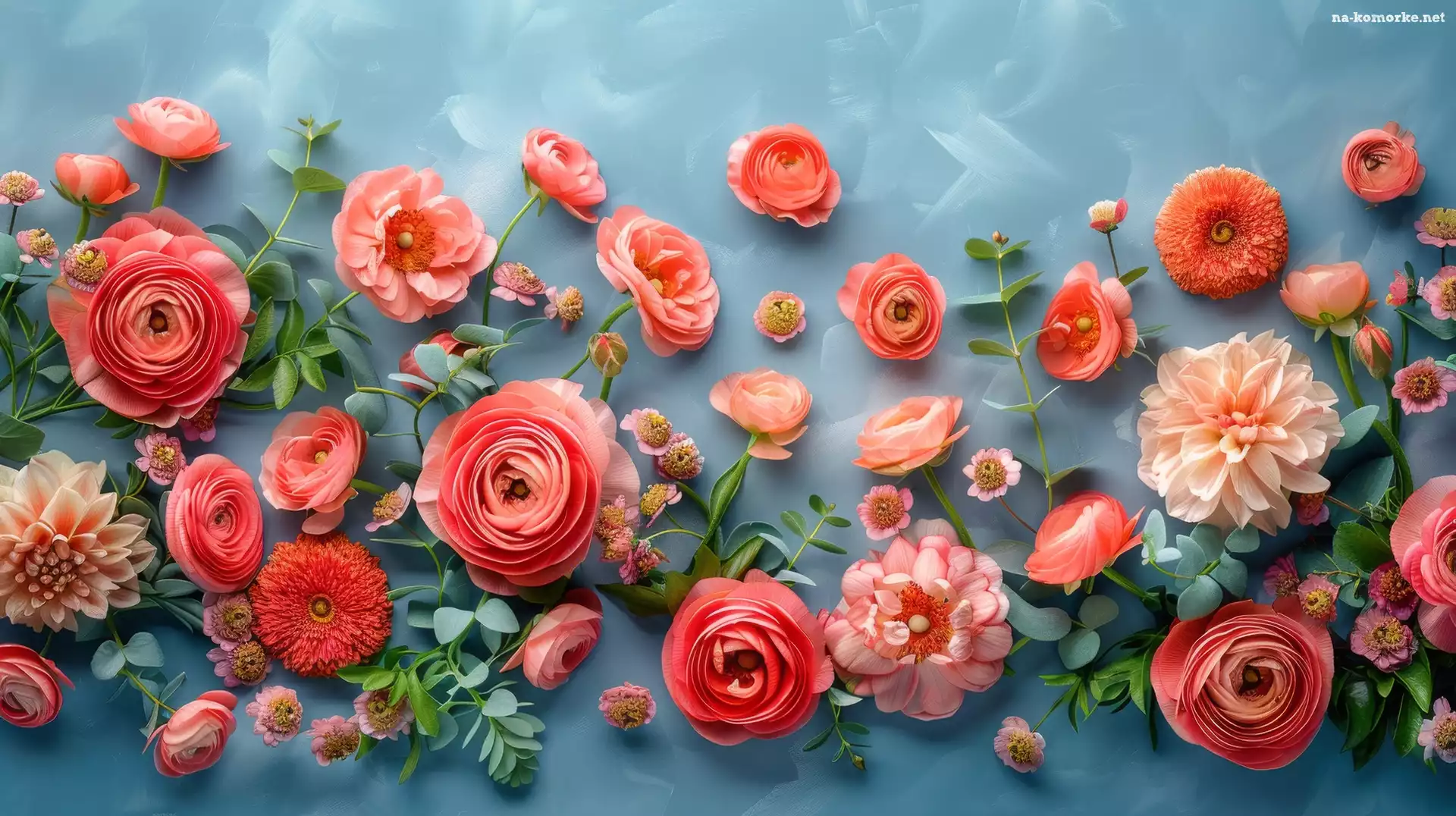 Kwiaty, Liście, Niebieskie, Różowe, Tło na Komórkę