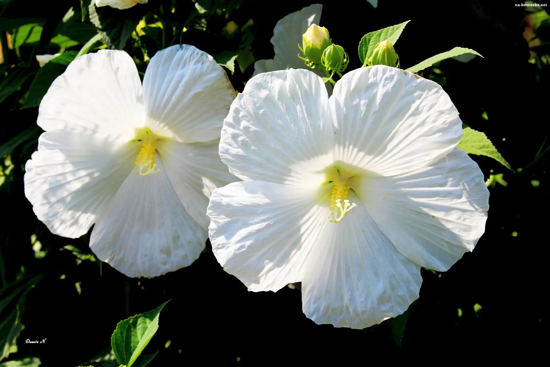 Liście, Biały, Hibiskus, Ogród, Pąki, Lato na Komórkę