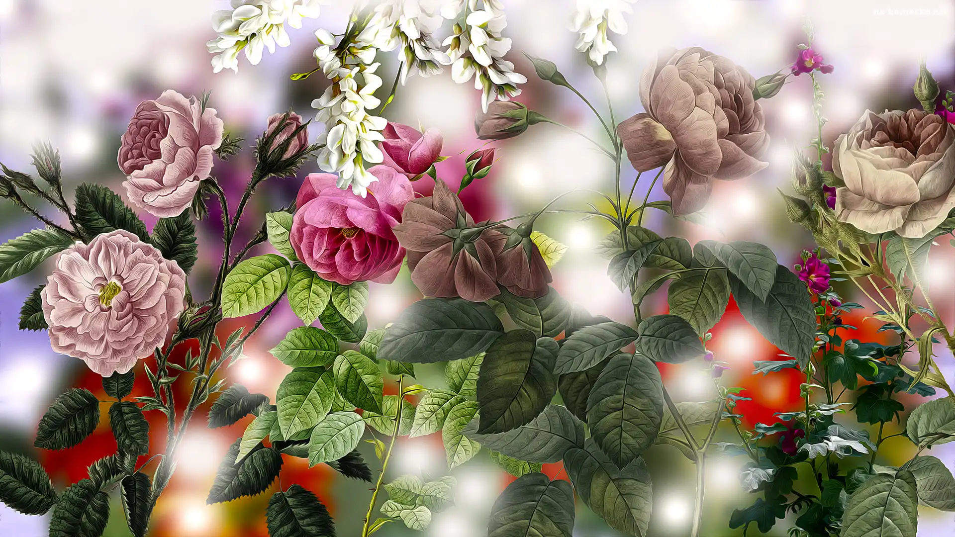 Liście, Grafika, Kwiaty, Róże, Pąki na Komórkę