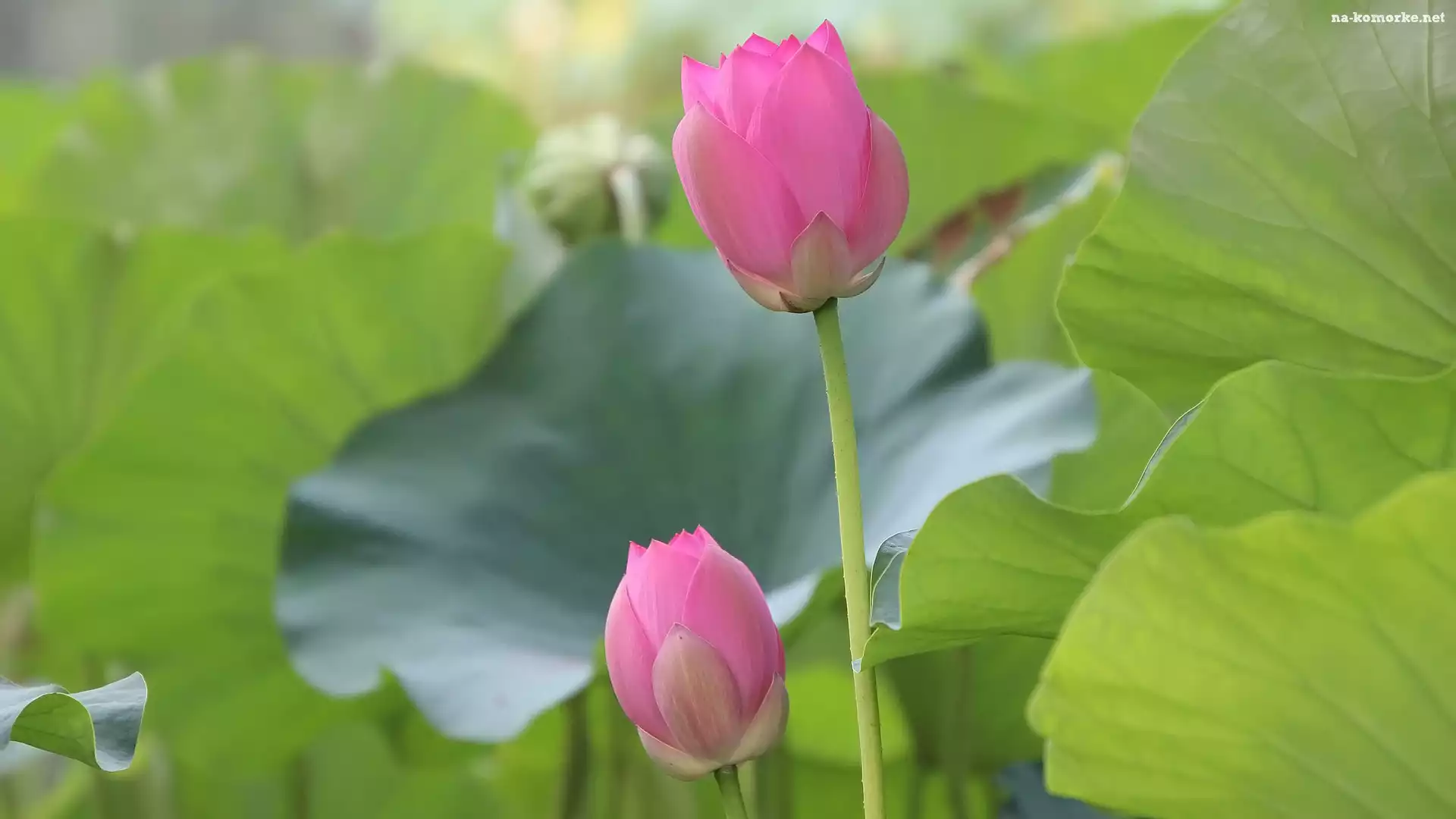 Liście, Kwiaty, Lotosy, Różowe, Pąki na Komórkę