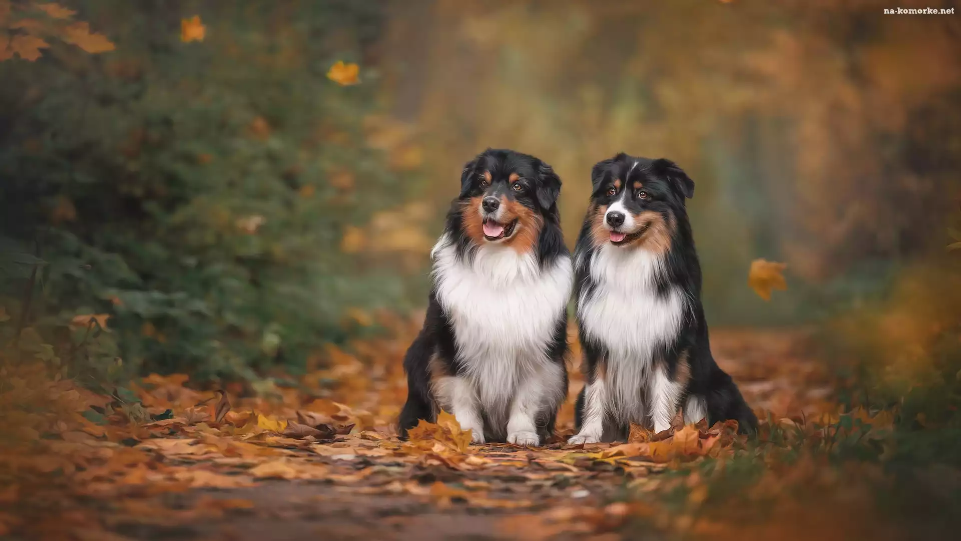 Psy, Owczarki australijskie, Liście, Dwa, Suche na Komórkę