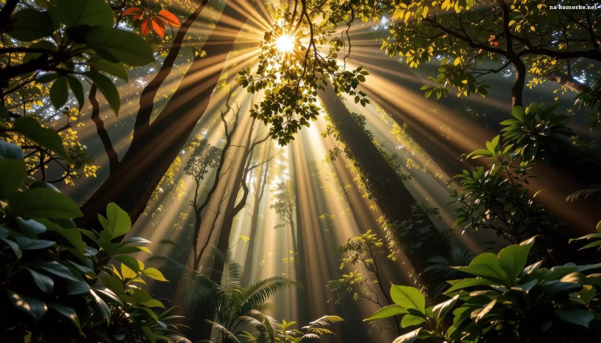 Las, Przebijające światło, Liście, Drzewa, Grafika AI na Komórkę