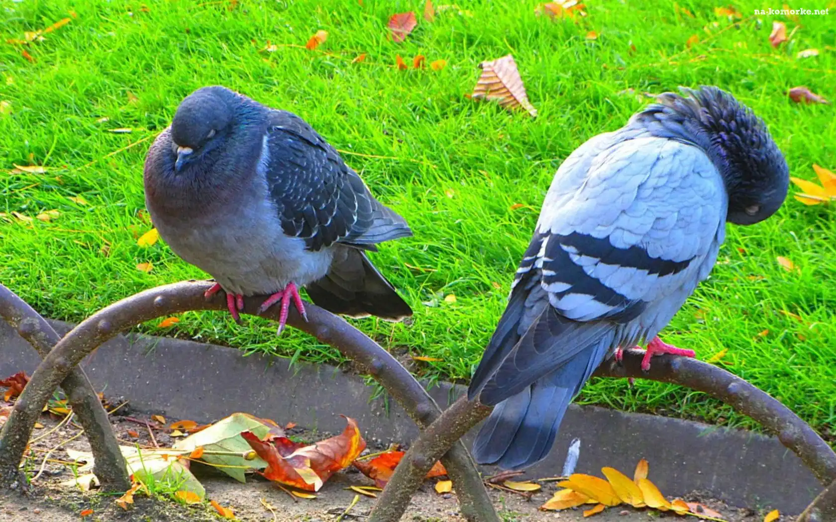 Liście, Gołębie, Park, Trawa, Jesienne na Komórkę