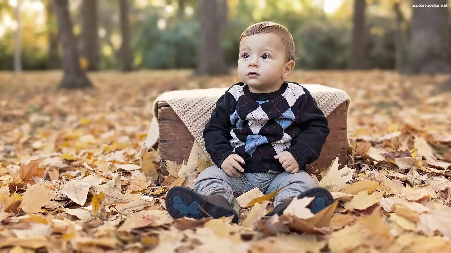 Liście, Chłopczyk, Dziecko, Skrzynia, Zapatrzony, Drewniana na Komórkę