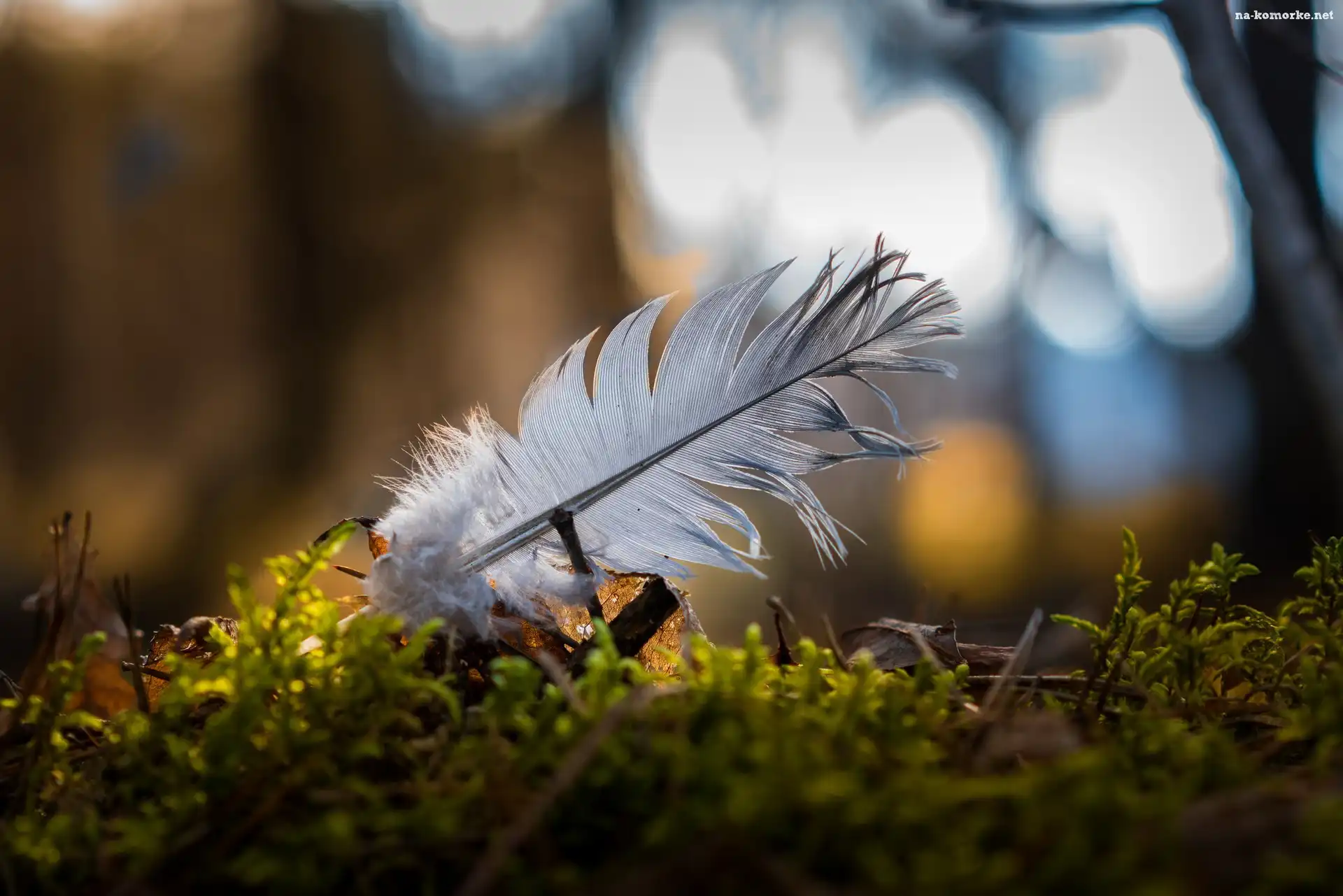 Liście, Ptasie, Piórko, Zbliżenie, Ściólka na Komórkę