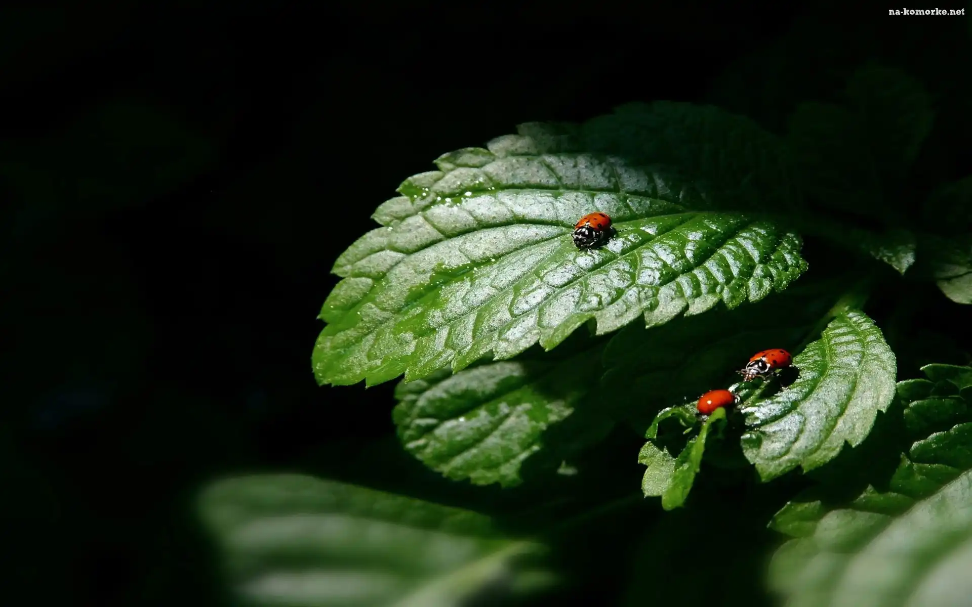 Zielone, Liście, Biedronki na Komórkę