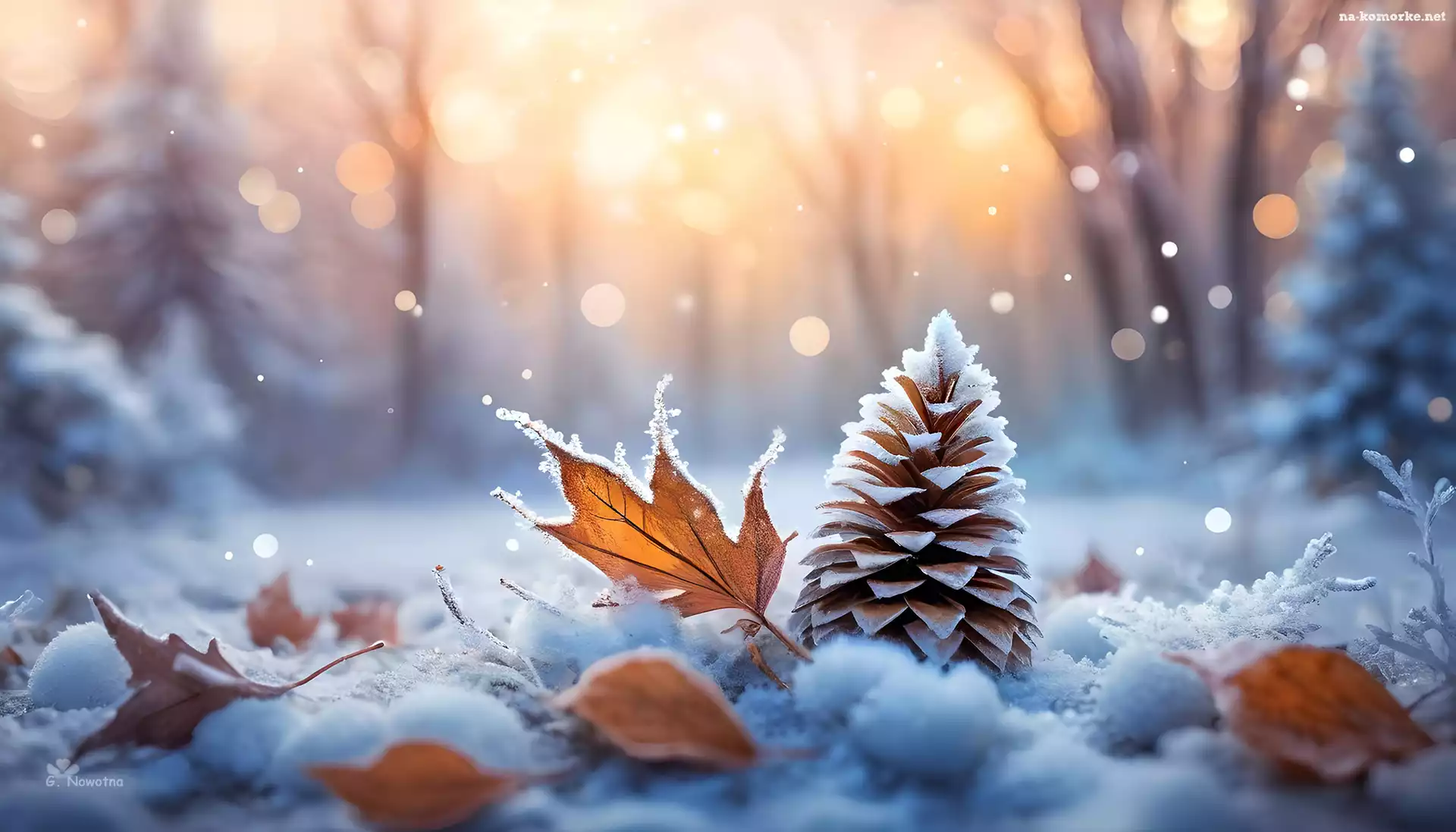 Szron, Liście, Zima, Szyszka, Śnieg na Komórkę